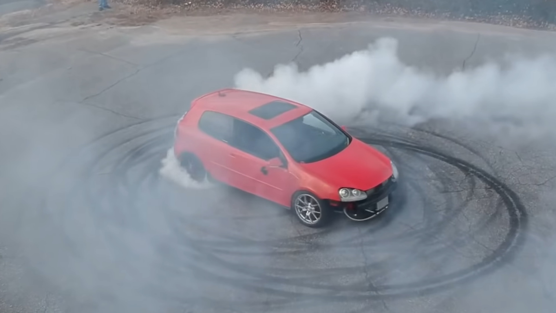 The GTI they swapped these parts into also has an upgraded 2.0-liter turbo engine. It has a series of high-performance parts that bring it into the neighborhood of 500 wheel-horsepower, and as anybody with a high-output front-wheel-drive car will tell you, having all of that power go to the front wheel can sometimes be a little frustrating. Shifting into reverse to do donuts isn’t the best look.