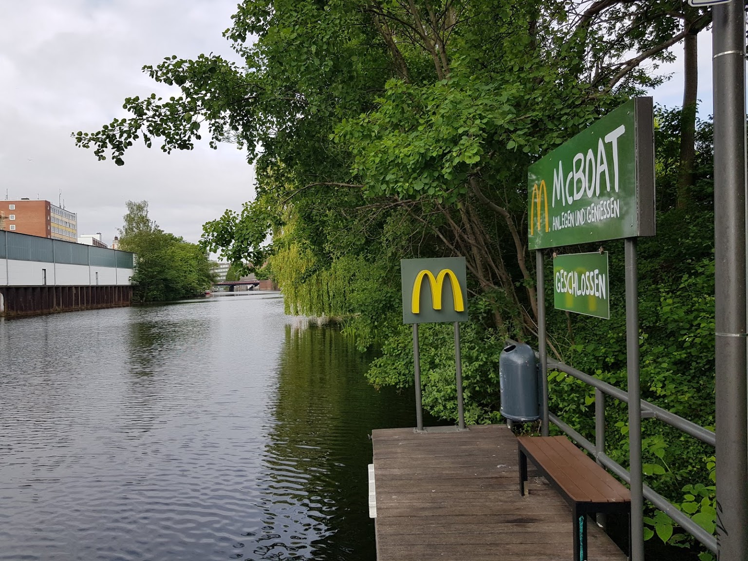Getting a quick meal on the go is a cornerstone of modern travel, but not all attempts to court hungry travelers work out. Sticking a fast-food franchise in a travel hub is a recipe for success, but cramming one aboard the mode of transport itself? Not as good an idea. Following the McTrain’s failure, McDonald’s Germany presumably went back to the drawing board and asked itself how it could apply the proven model of the drive-thru to new modes of transit. And when someone unrolled a map of Hamburg’s canal network on the conference table, lightbulbs went off.