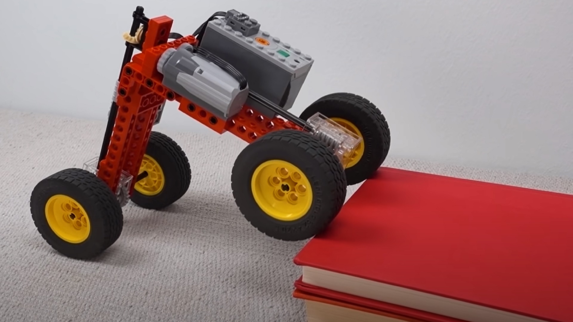 It also illustrates the importance of traction, showing the way chunkier tires grip the obstacle and smooth tires slip. Deep tread helps to keep your vehicle adhere to the surface, and four-wheel drive gives you better control. Moving pieces around on the LEGO bot shows how weight distribution affects the climb; pay attention to that before packing your vehicle for your next adventure.