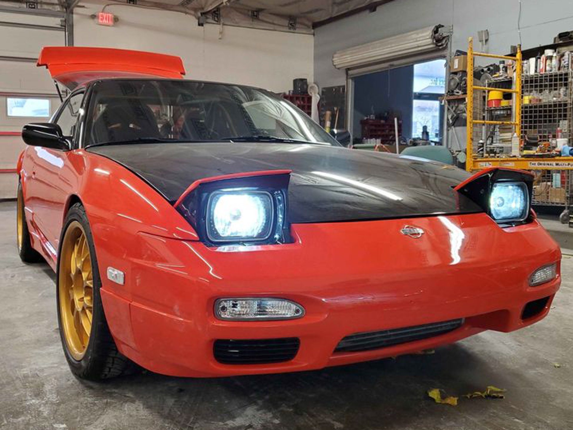 A 1992 Nissan 240SX comes stock with a pleasing taillight arrangement, with an attractive heckblende between its two taillights. But what if you wanted the full width of the car to light up?