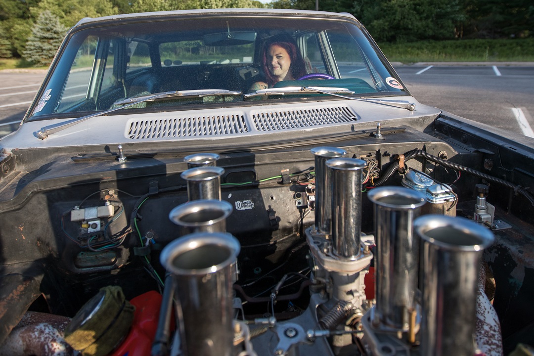 Four Weber carburetors and a four-speed Hurst shifter had already been installed, and in their garage, Hurlin and her husband added a McLeod clutch and a roll cage. They saw the potential in the modifications already on the car, which attracted Hurlin to it in the first place. Once they got the wagon in their garage, they rebuilt the shifter and transmission, fine-tuned the carbs, and did quite a bit of re-wiring to untangle a rat’s nest of splices and connectors.