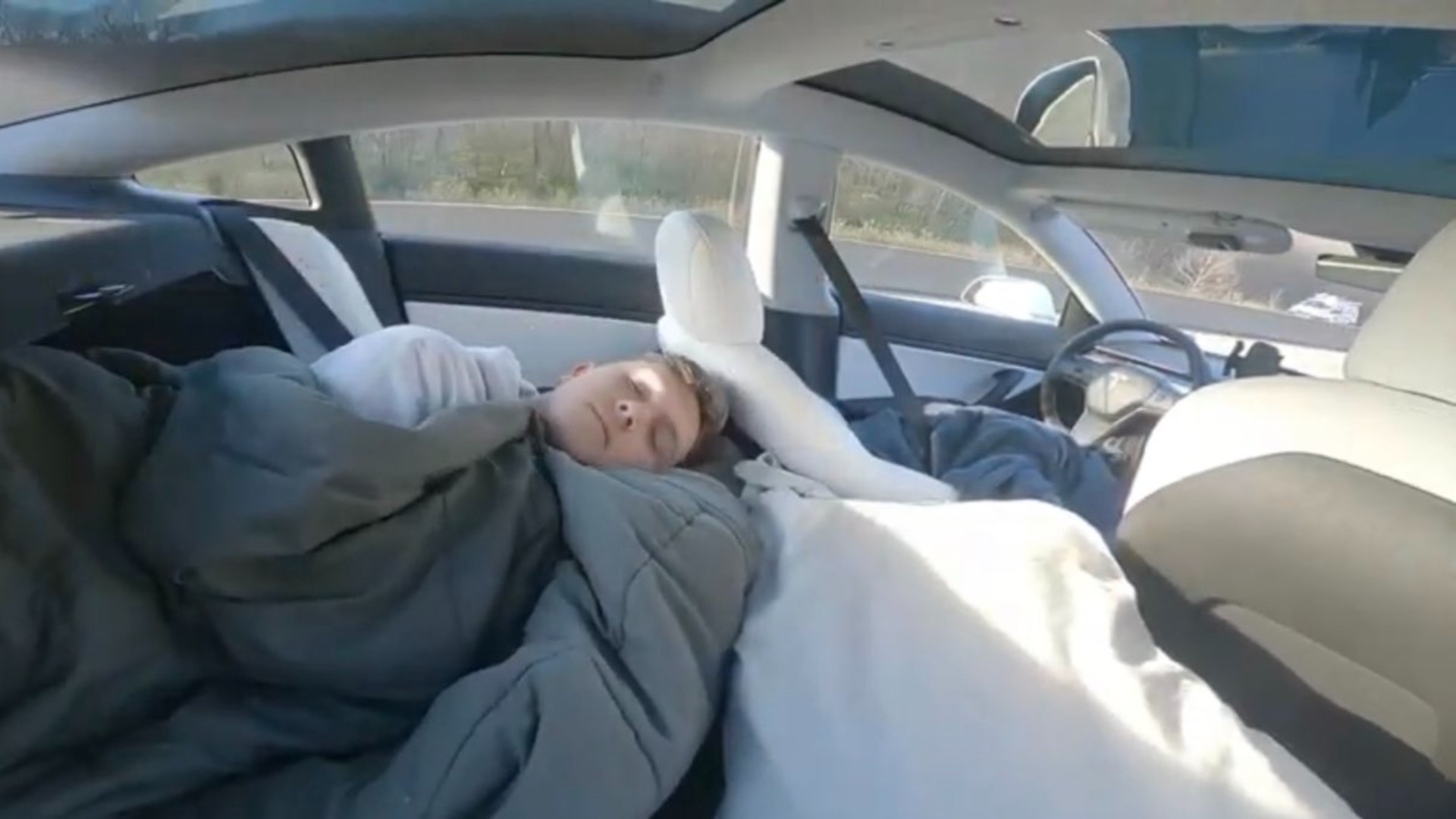 Cox later crawls out of the driver’s seat entirely, leaving the seatbelt buckled to stop Autopilot from deactivating, and has his mother film a second clip of him pretending to snooze in the back seat. This turned into a few semi-viral clips that have circulated on social media, often with people decrying his antics in the comments.