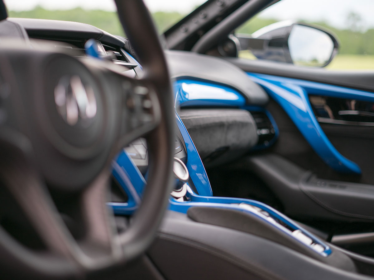The electric one-off, which will compete in the Electric Modified division, may look like the NSX on the outside, but its guts share more with the CR-Z time attack car Honda ran at Pikes Peak last year than the turbocharged gas/electric hybrid super sports car it resembles. Packing four separate electric motors, the new racer can independently shuffle torque between the wheels in an electron-enabled version of Acura’s Super-Handling All-Wheel-Drive.