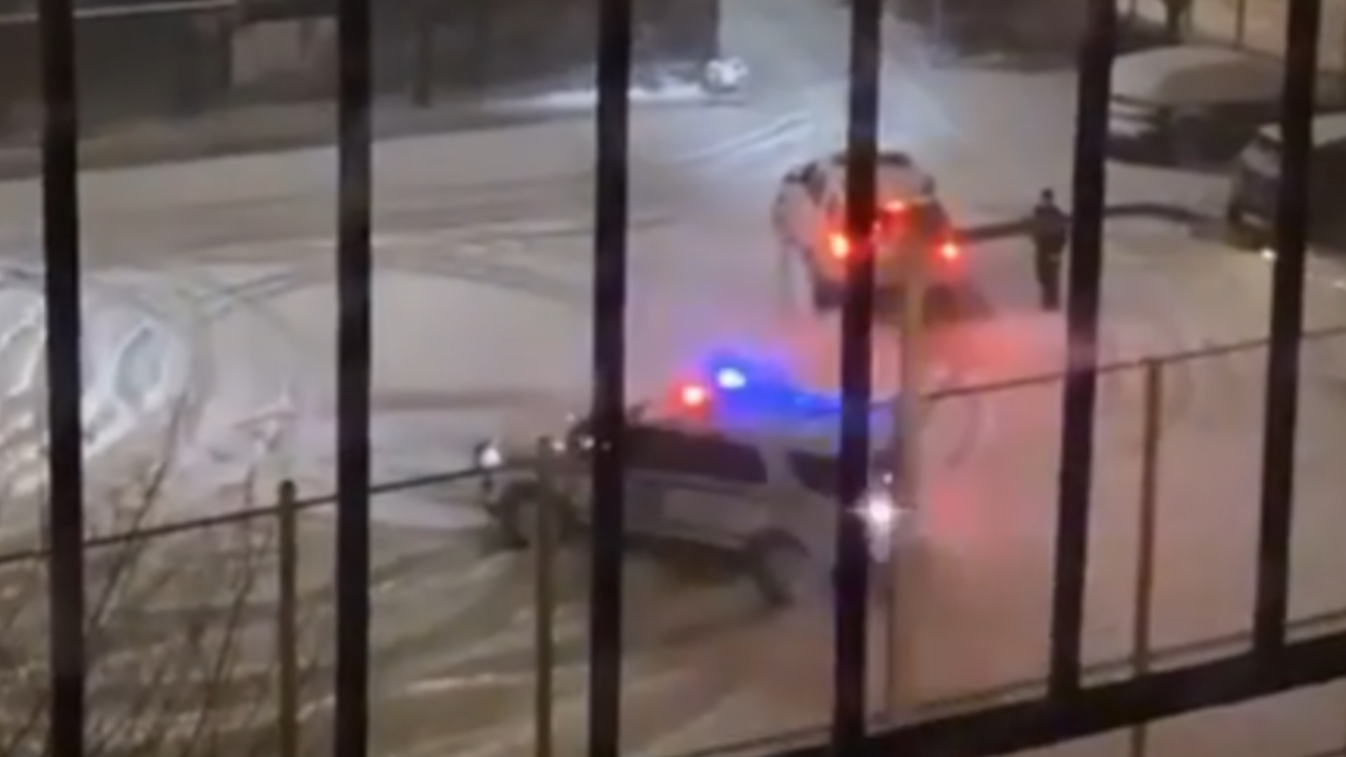 The video appears to have taken place last night, Jan. 31, as the snow began to fall in New York City. Not much else is known, like the location or the names of the officers involved. Needless to say, they are probably lucky that the video isn’t high quality enough for any plate numbers to be discerned.