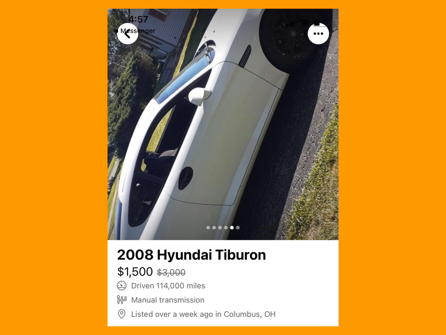 I’ve had some tough weeks of fruitless searching on Craigslist and Facebook Marketplace recently. I’m always deal-hunting, trying to find a car that I can easily fix, drive around for a bit, and then sell for a profit. Lately, it seems like any good deal or potential flip gets sold quickly, even minutes after being listed. Well, after dejectedly looking for what felt like forever, I stumbled upon an ad on Facebook Marketplace for a 2008 Hyundai Tiburon. This particular car had a five-speed manual, mated to the smaller (but cheaper to replace) 2.0-liter four-cylinder engine. According to the ad, the car had only done 114,000 miles but it “needed a new motor.” It had also been listed for sale twice, the first listing having been put up more than fourteen weeks prior.