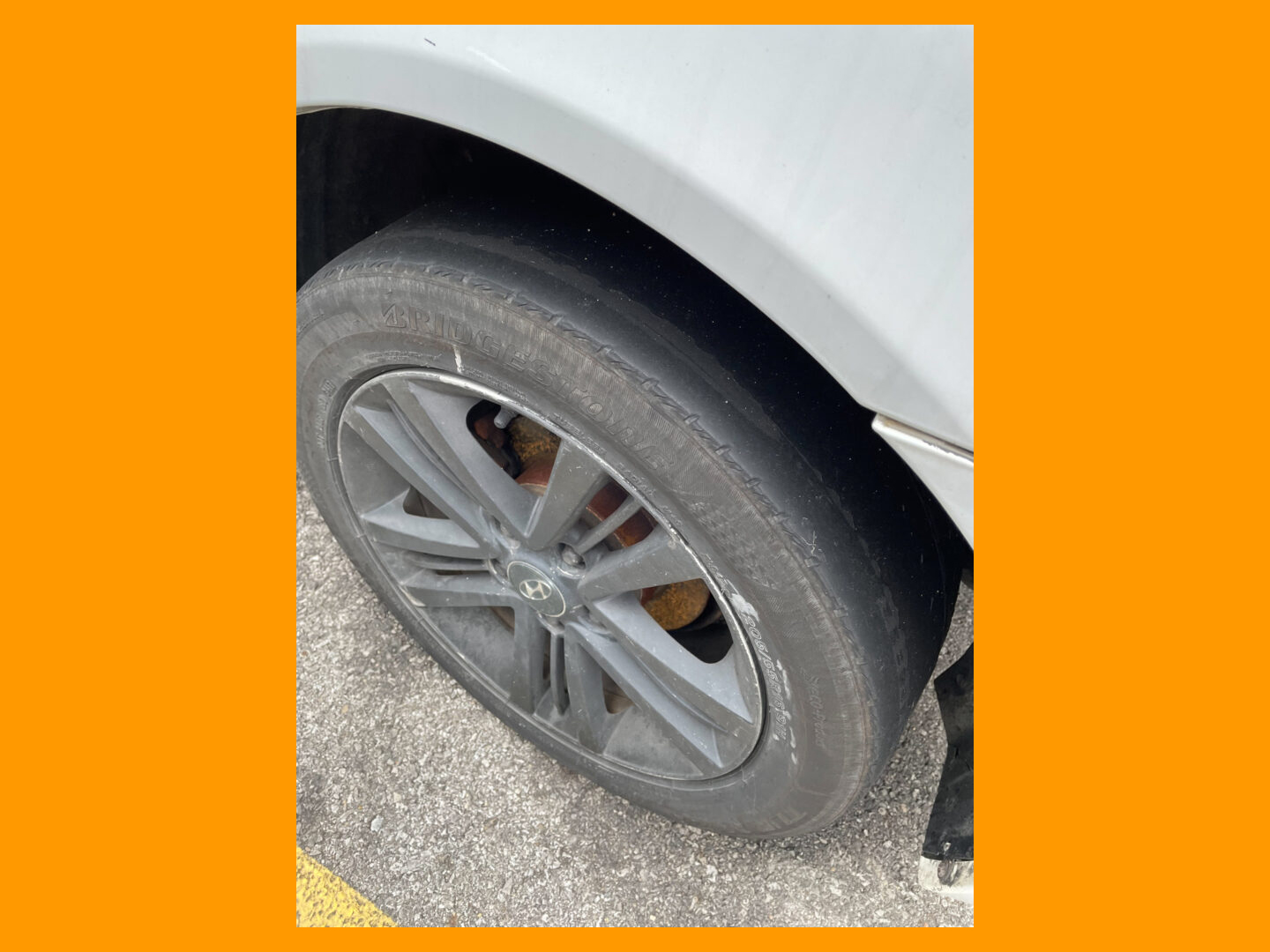 Yet underneath, there was a huge puddle of oil. The car didn’t even have license plates. Instead it only 30-day temporary tags, which were two months expired.