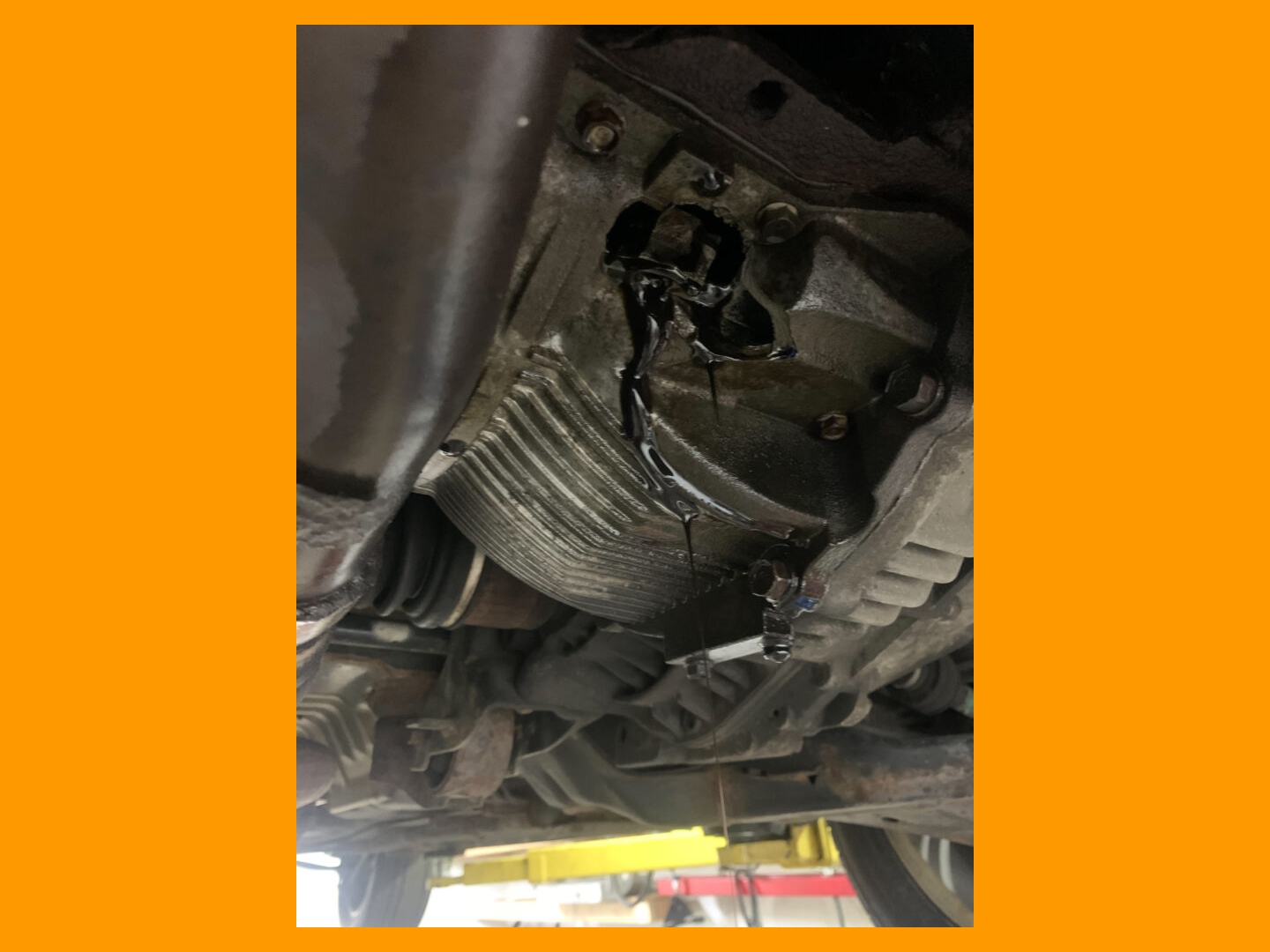 Once I got the car on a lift, it didn’t look a whole lot better. To absolutely no one’s surprise, another gaping hole in the bottom of the engine block revealed itself.