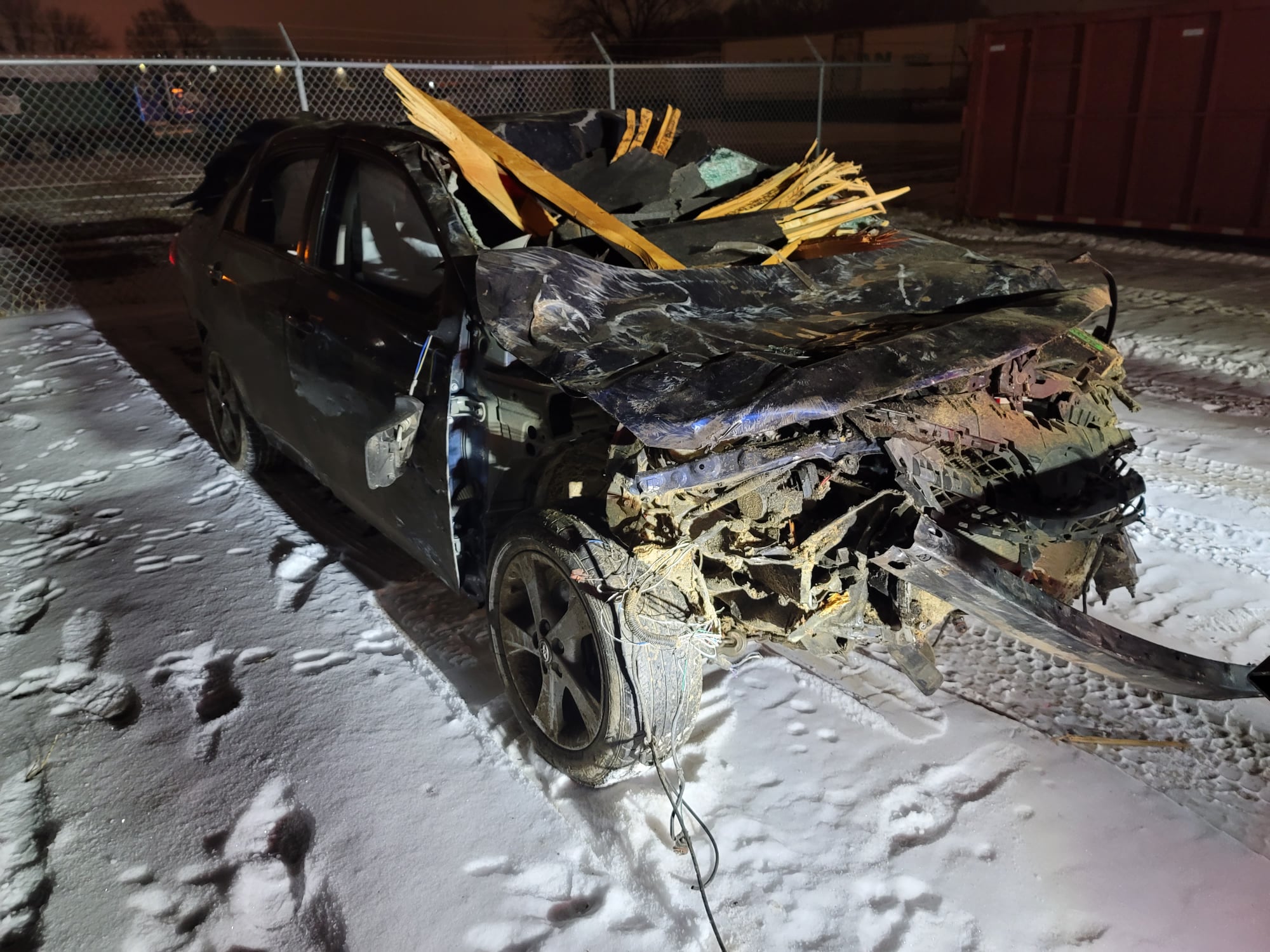The driver, identified as Israel Hidalgo of Sioux Falls, South Dakota, was reportedly traveling northbound on Iowa Highway 9 at around 10:40 p.m. Tuesday evening. Authorities told KELO they believe Hidalgo was doing over triple the posted speed limit of 35 mph, likely around 115, when he left the road at an intersection and hit an embankment, sending his Toyota airborne.