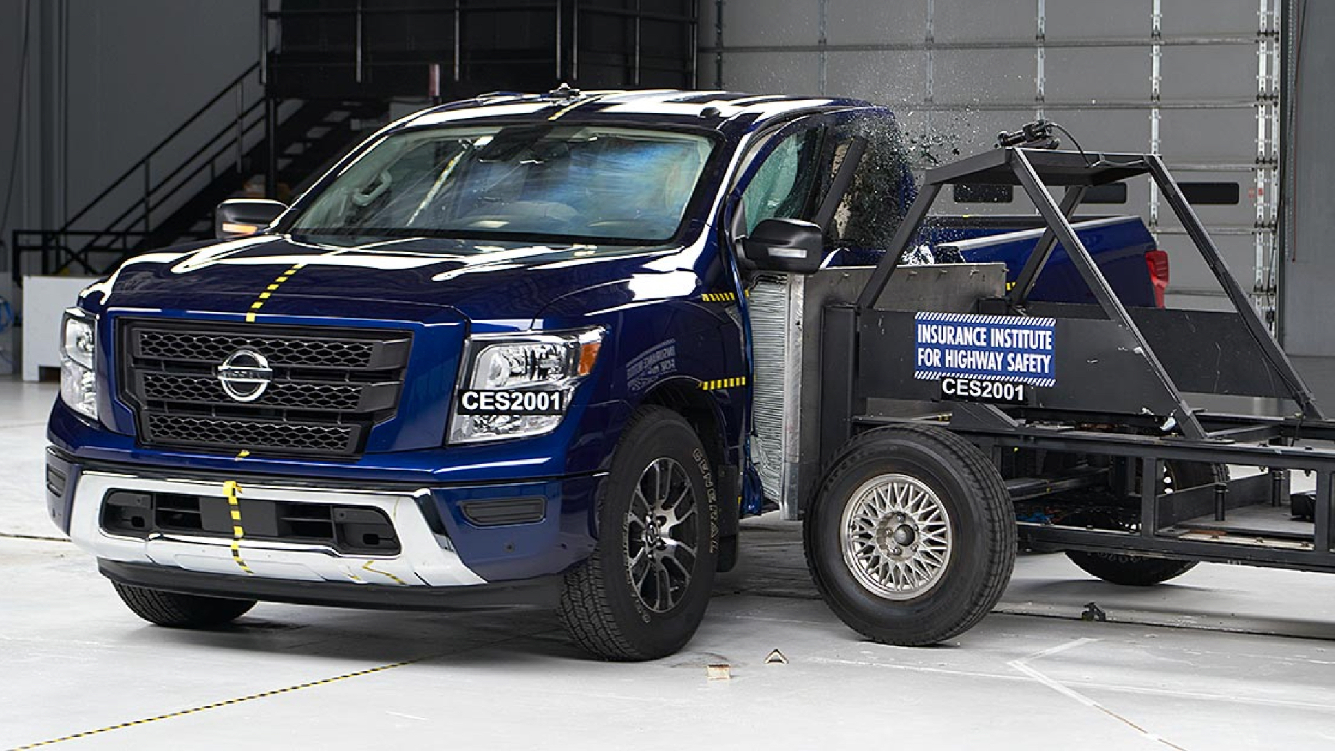 [A video of the 2020 Titan extended cab side crash test, where the truck earned the IIHS’ highest rating of “good.”]