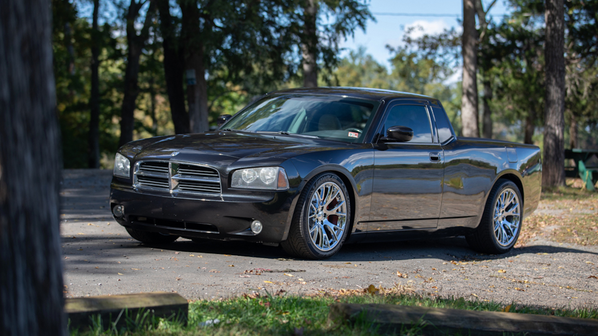 This Chargero, if you will, was assembled from a 2006 Charger R/T and a ute kit supplied by Smyth Performance, a name you may know from those VW Jetta pickups. Its conversion involved reinforcing the car’s unibody to fit the kit’s corrugated aluminum bed, which this car’s seller on Bring a Trailer says can support an 800-pound payload—plenty for a light-duty sport truck.