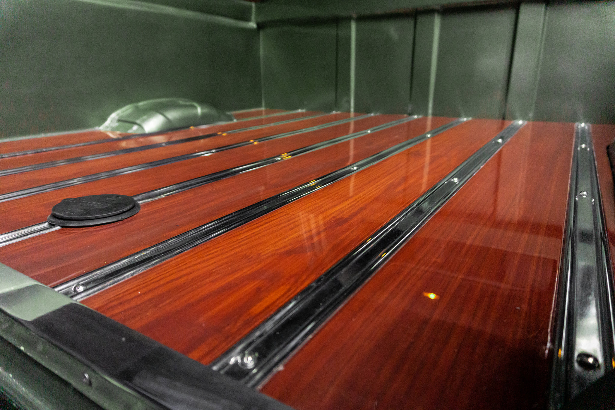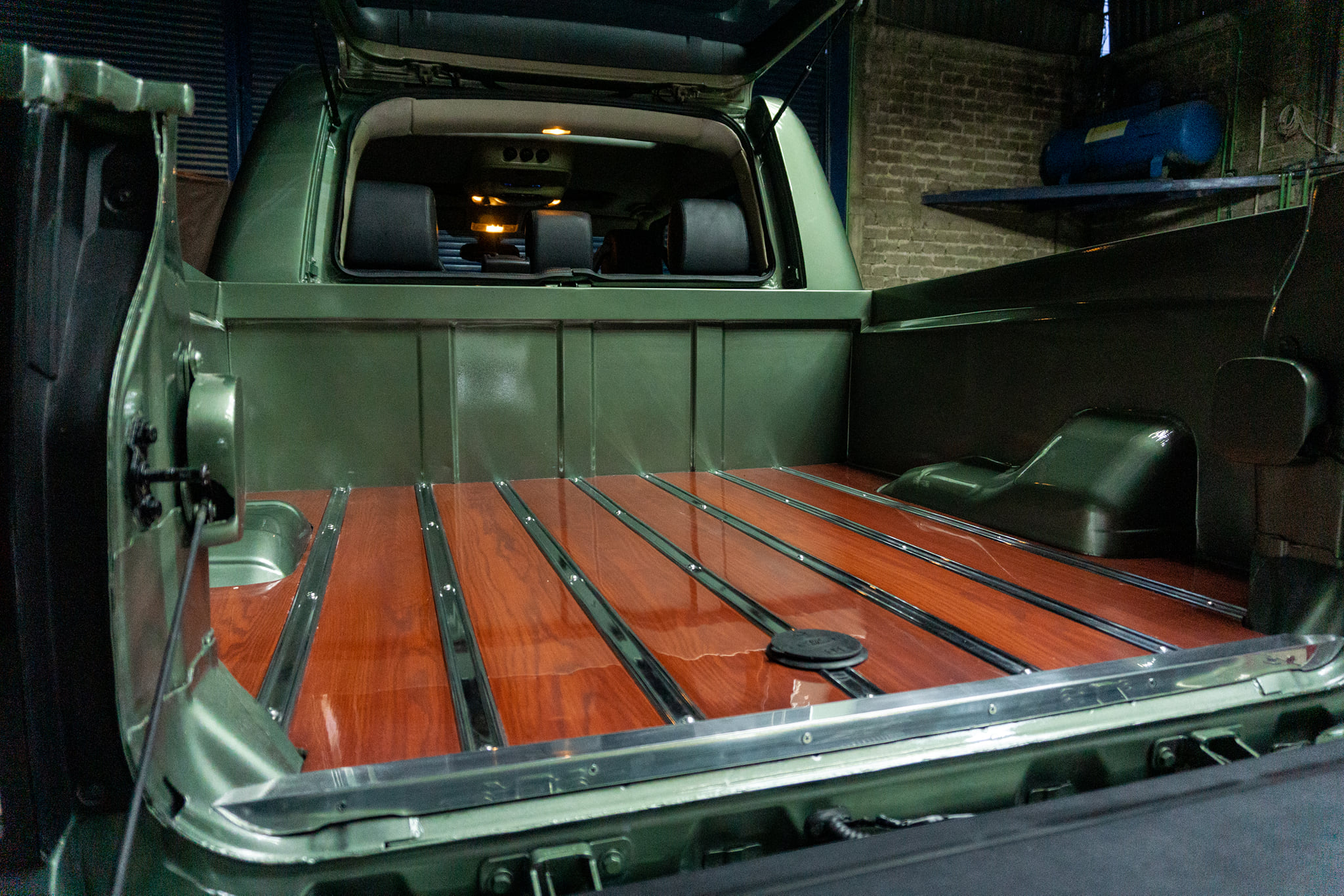 After carefully examining Land Rover’s integrated body on frame chassis, VA-K’s crew based just outside the city of Guadalajara extended the frame using the standard tubular steel method, adding OEM parts where possible with custom electronics for the power rear window and LED lighting.