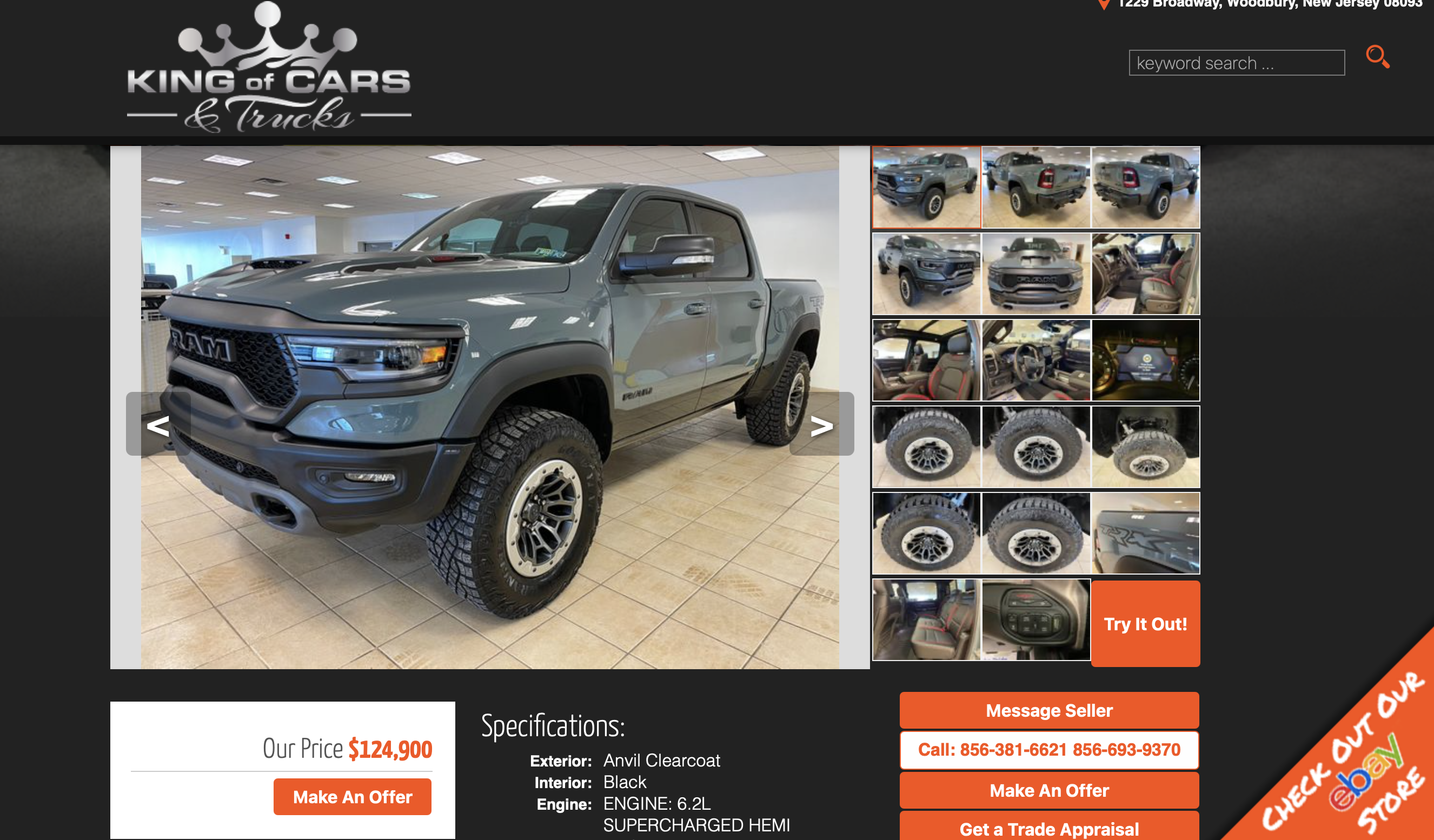 It looks like the dealer in Huntington Beach Jalopnik reported on with a Launch Edition TRX for $143,145 may have sold it, because it’s not listed on the site today. Over on eBay, however, New Jersey car dealer King of Cars and Trucks Inc is offering a different Launch Edition with only 13 miles on it for $124,900. Even when fully loaded like our recent tester—which carried an $89,565 sticker—that’s still a $35,000 markup.