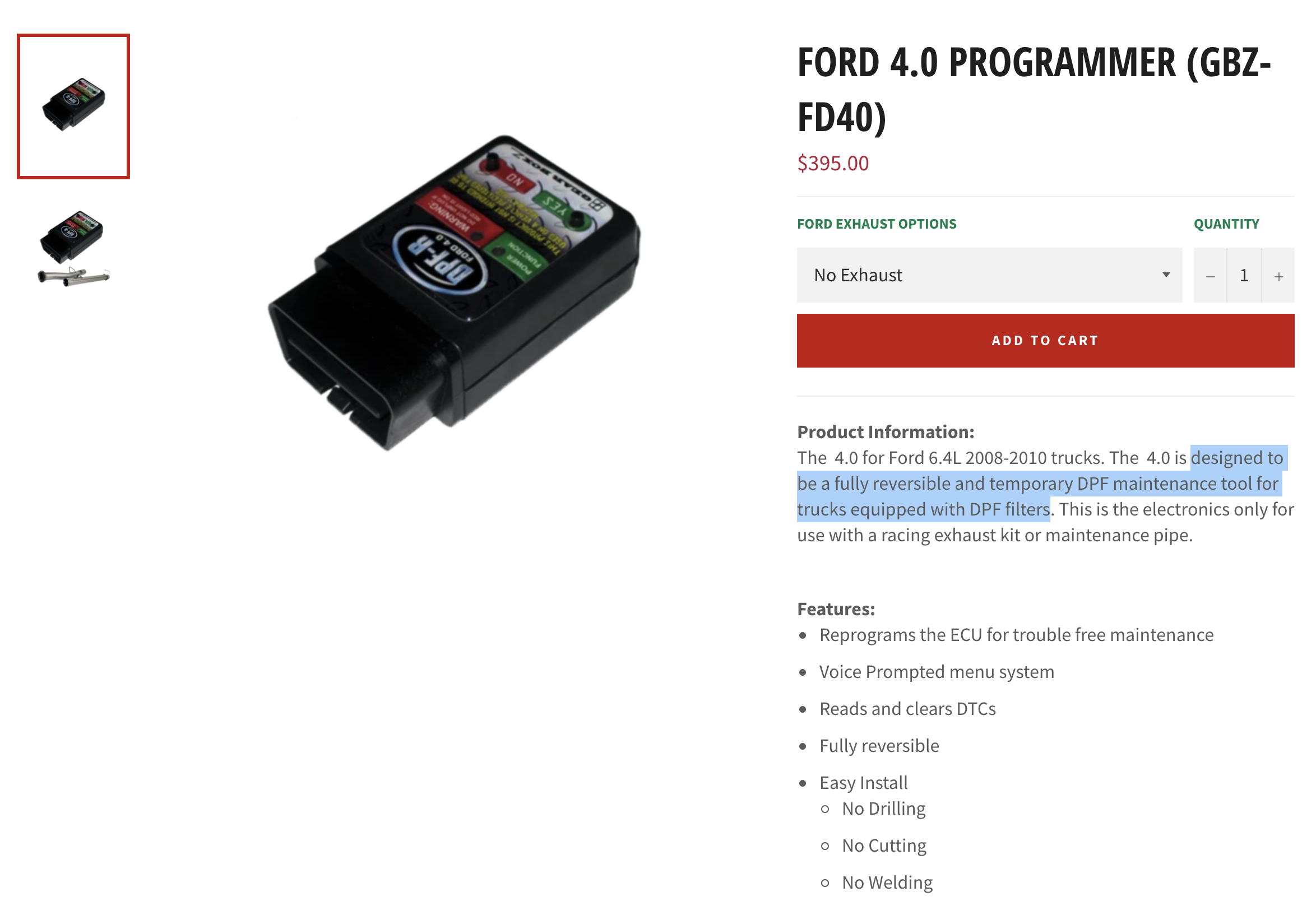 It’s worth noting that on GBZ’s online storefront, its programmers are currently listed as being “designed to be a fully reversible and temporary DPF maintenance tool for trucks equipped with DPF filters.”