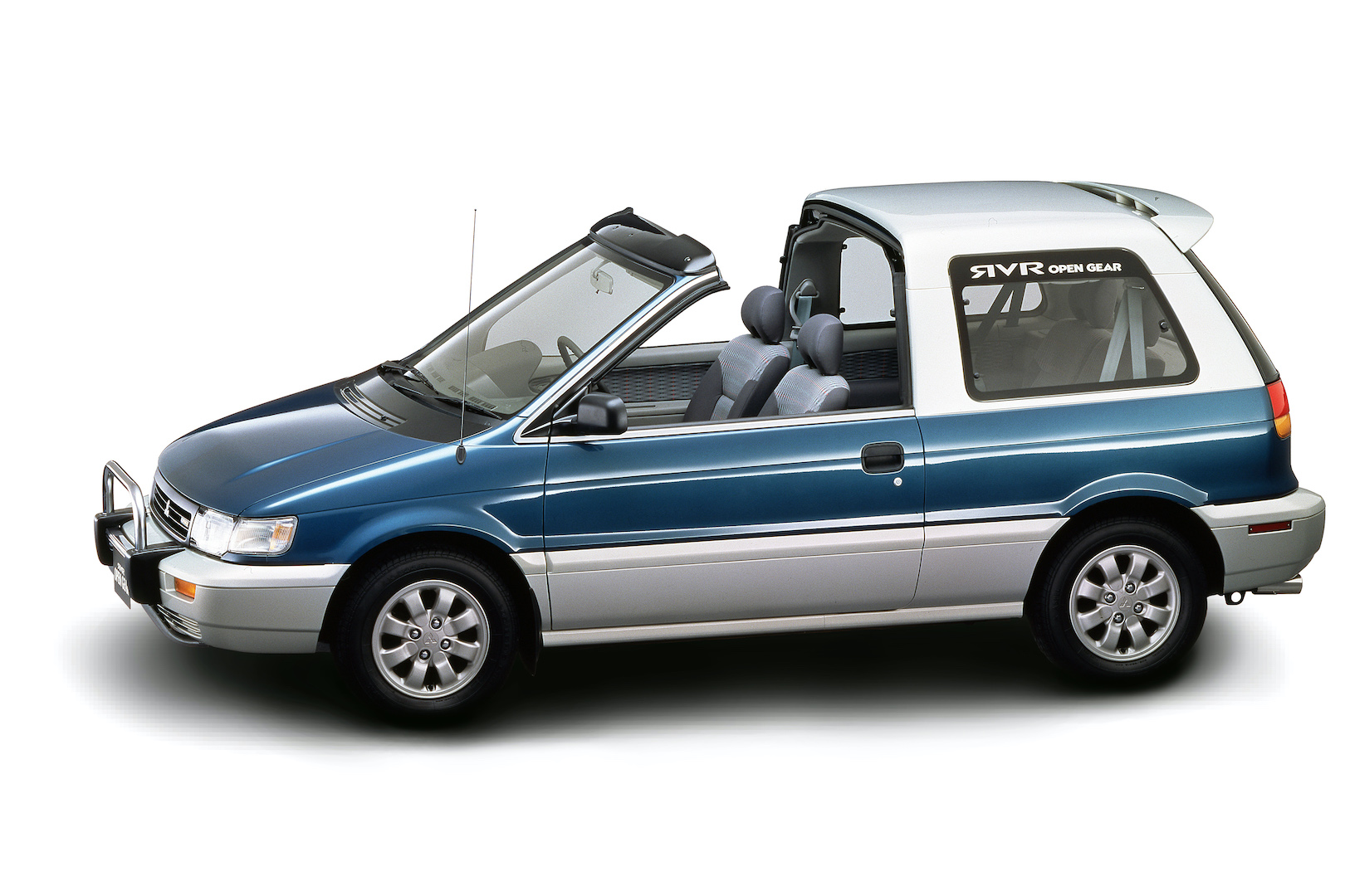 Introduced in 1991, the Expo and LRV were fraternal twins built on the third-gen Lancer/Mirage platform with similar styling, but with different wheelbases, and equally hard-to-define body styles. The smaller, demi-hatchback LRV was easily the stranger of the two, with a single door on the driver’s side, and two on the passengers’, the rear of which was a minivan-style sliding door. Think a Hyundai Veloster, but by Diamond Star Motors; that Chrysler-Mitsubishi partnership that gave us cars like the Eagle Talon, Chrysler Conquest, and of course, captive import LRVs like the Eagle Summit Wagon and Plymouth Colt Vista. Mitsubishi did some nameplate fudgery of its own, too; the LRV’s name in much of the world was Space Runner, like some ’80s arcade cabinet. And in Japan, it was simply RVR, stylized as ЯVR.