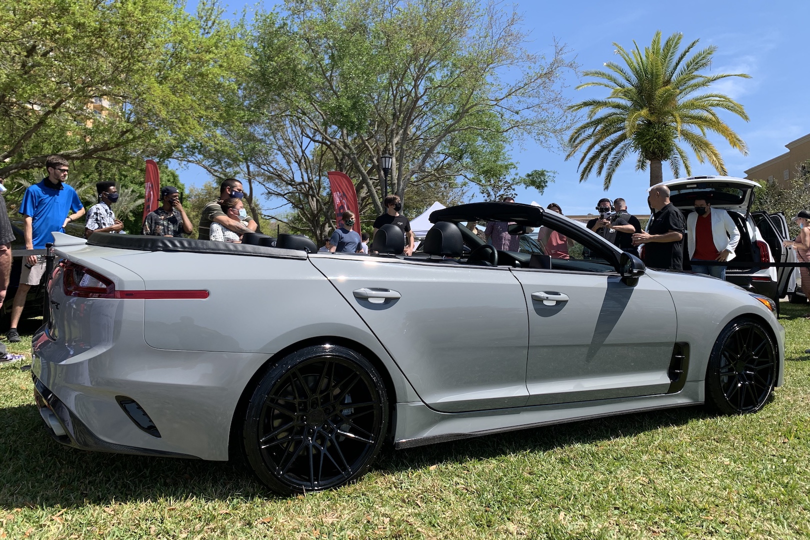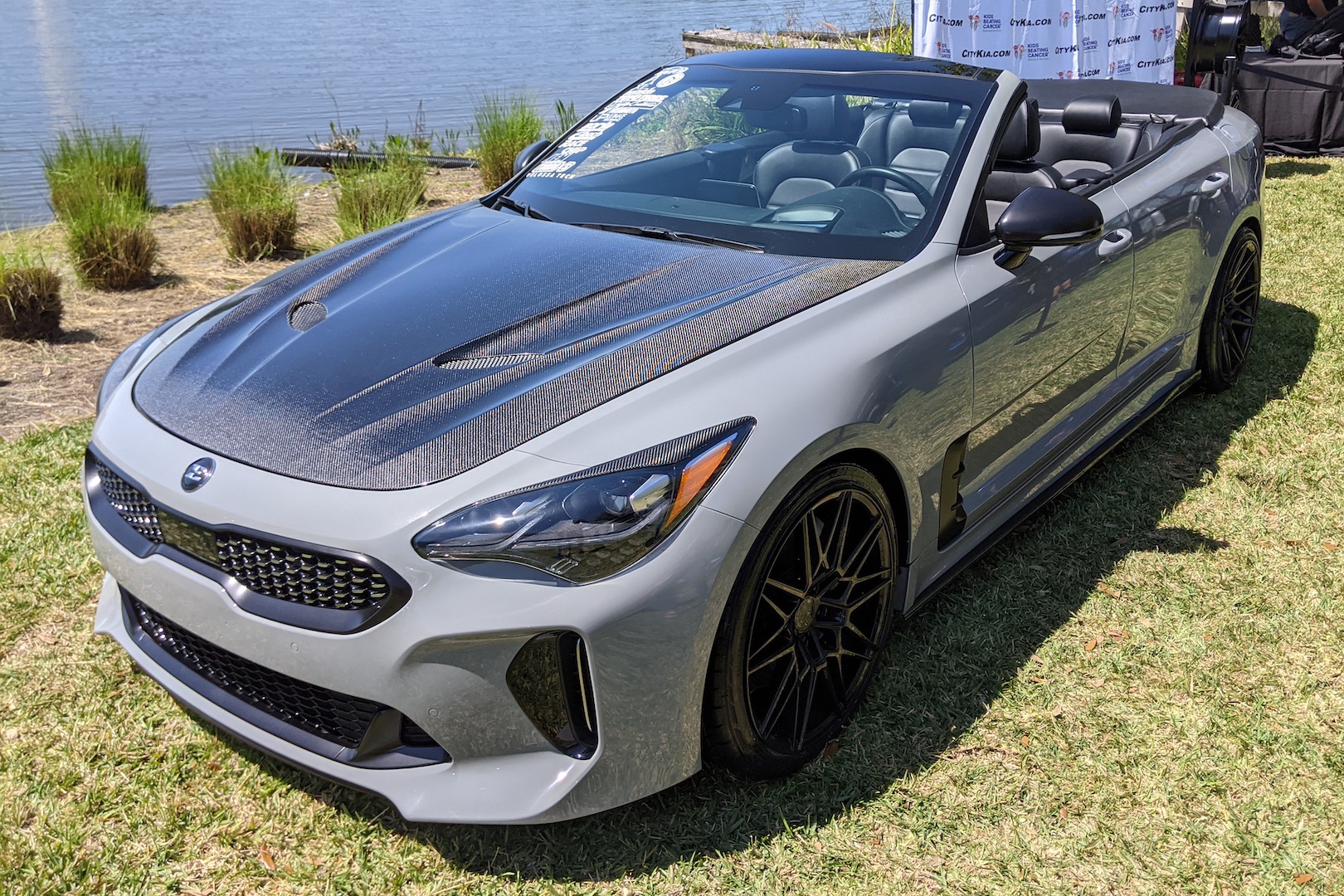 The one thing nobody has ever thought of while behind the wheel of the newly powered-up Kia Stinger GT is probably, “eh, this needs its roof hacked off.” But necessity evidently isn’t the only mother of invention, as a Florida Kia dealership recently commissioned a prototype of Kia’s sports sedan Sawzalled up just so, and unlike many soft-top conversions, it actually looks damned good.