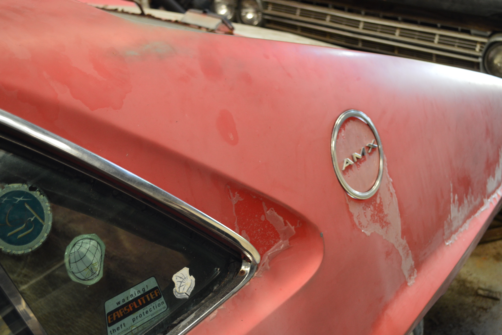 Somewhere along the way, Sechrist brought up how badly he wanted an AMX with the four-speed manual and Robbie mentioned there was one left on the lot, but that it was inaccessible: It was inside the collapsed paint booth. Through the shop’s window, though, Sechrist saw the roof itself hadn’t fallen on the car. It was suspended on a refrigeration unit, and while some of the ceiling was touching, the car would be fine as long as the roof didn’t completely collapse.
