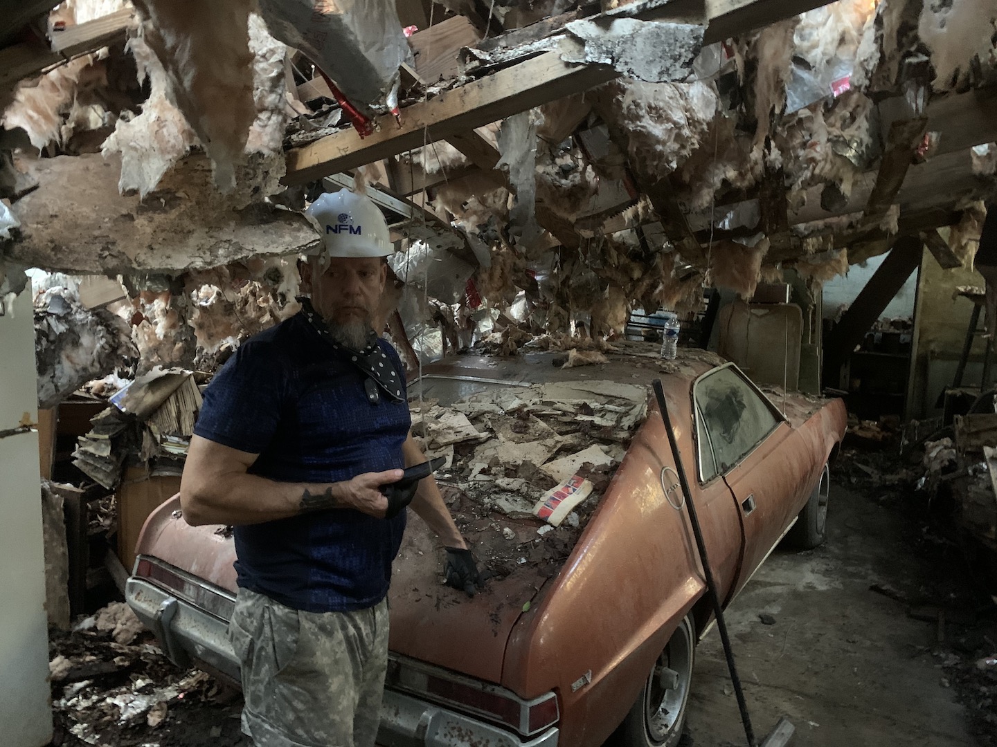 He asked permission to go in and, after signing a waiver, concluded the AMX could be saved. Using his experience in construction and demolition, he proposed bracing what remained of the structure, and building a makeshift tunnel to the shop door. Robbie was on board, and the two agreed to reconvene two weeks later for the car’s recovery.