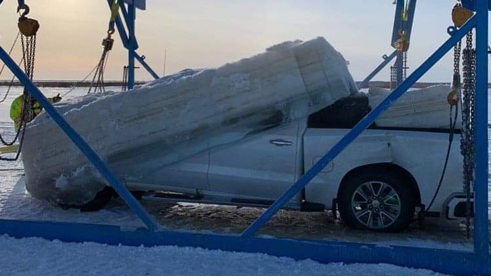 As Rossington explained to me via email—central Canada’s a long way to drive—you could barely walk around the Chevy when they got to the site in late February. The truck was actually driven into the water around Jan. 1 of this year when the driver became disoriented, straying off the designated ice crossing. It remained there for a while, partially frozen, until the team of Brett Wildman, Dennis Lair, and Dale Buick could pay a visit.