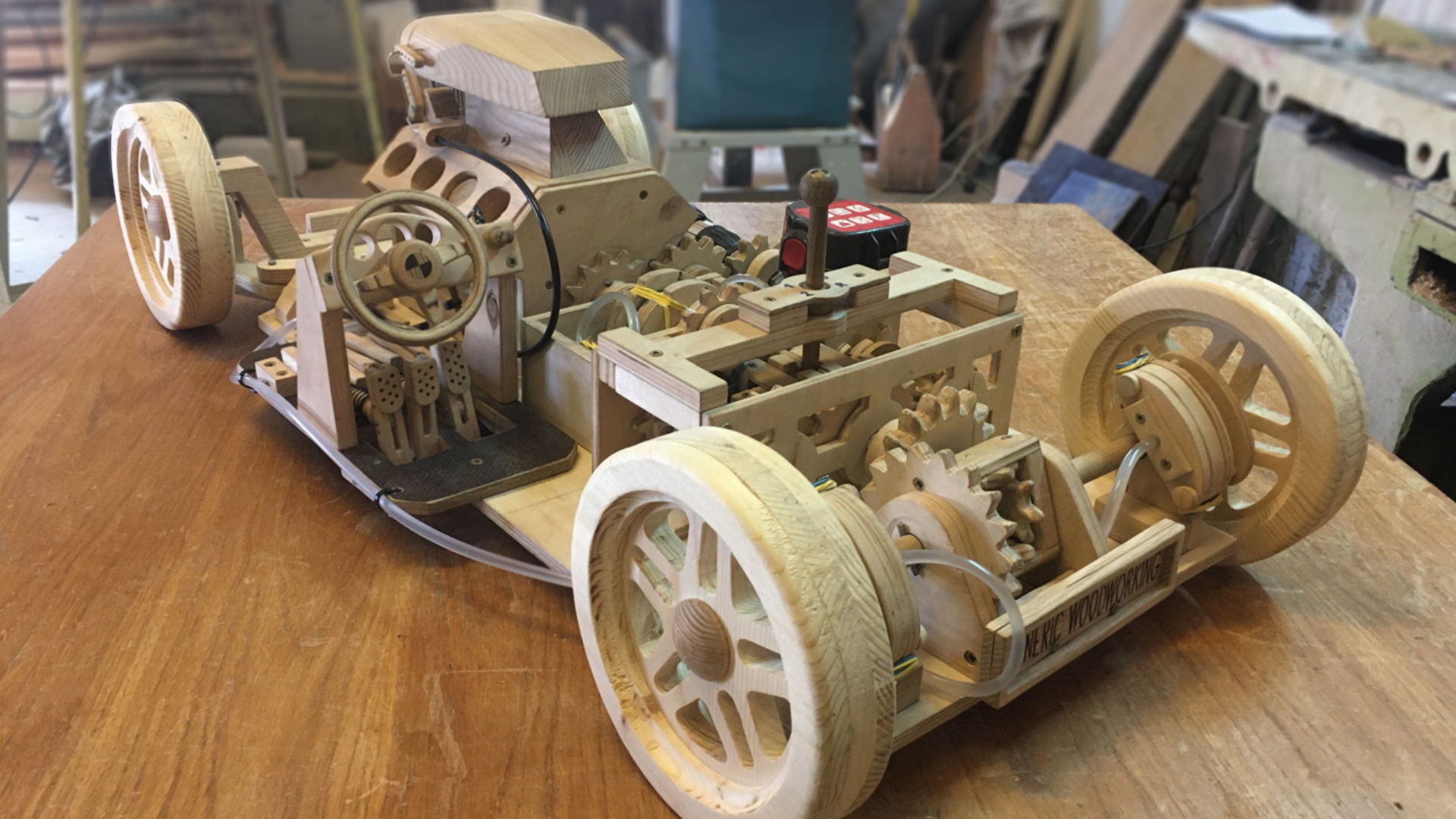 Snežko built a truly incredible mechanical model of a car out of wood, carefully demonstrated on this video on his YouTube channel, and the details of the build are amazing. It’s not just some pistons moving up and down in a drilled-out block of wood—the model has a working transmission, differential, clutch, and also other details that are usually left out of such builds, like working gauges.