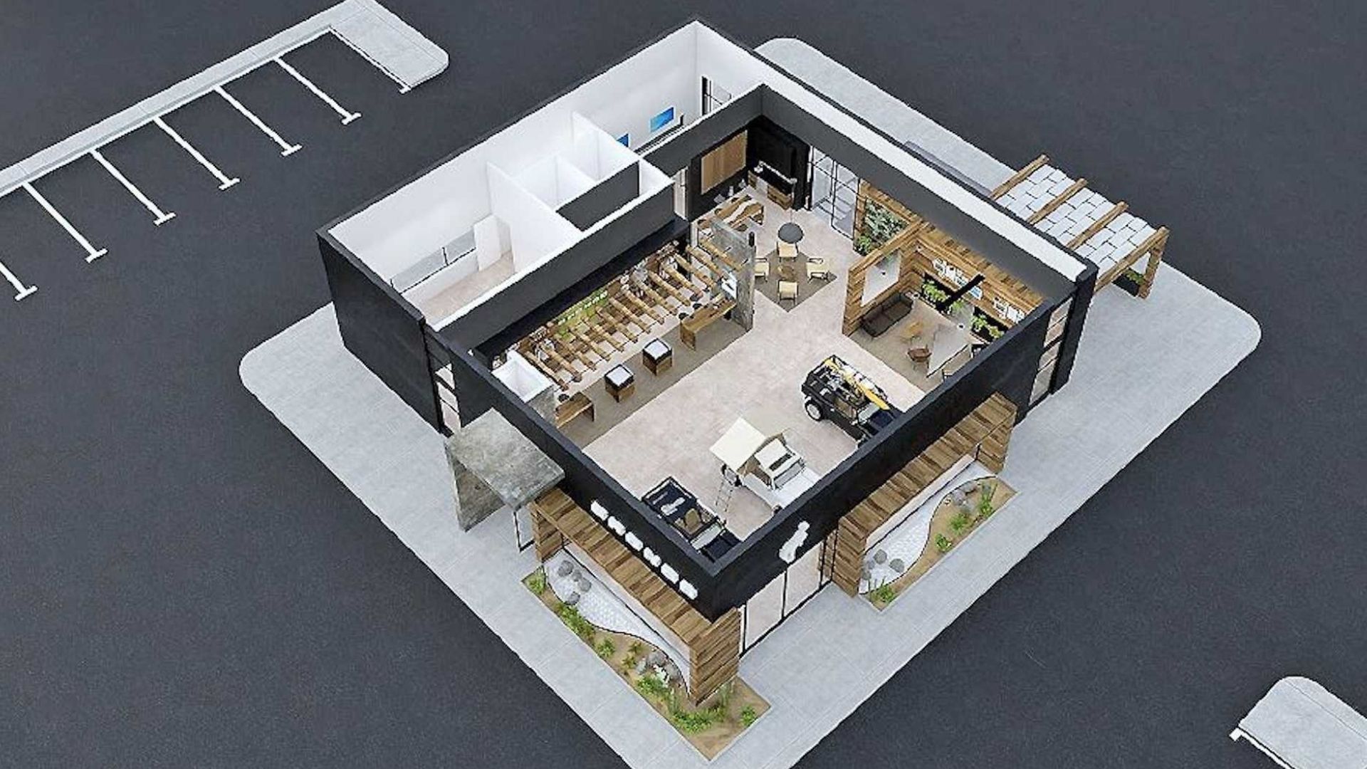 The Blue Oval gave the thumbs-up to 100 dealerships to surf the wave of Bronco success and open separate, free-standing showrooms just for that branch of the Ford family tree. Renderings provided to Automotive News show a fully-formed concept that includes a customer lounge and café where Bronco, Baby Bronco, and Bronco wannabe owners can gather and execute the secret handshake.