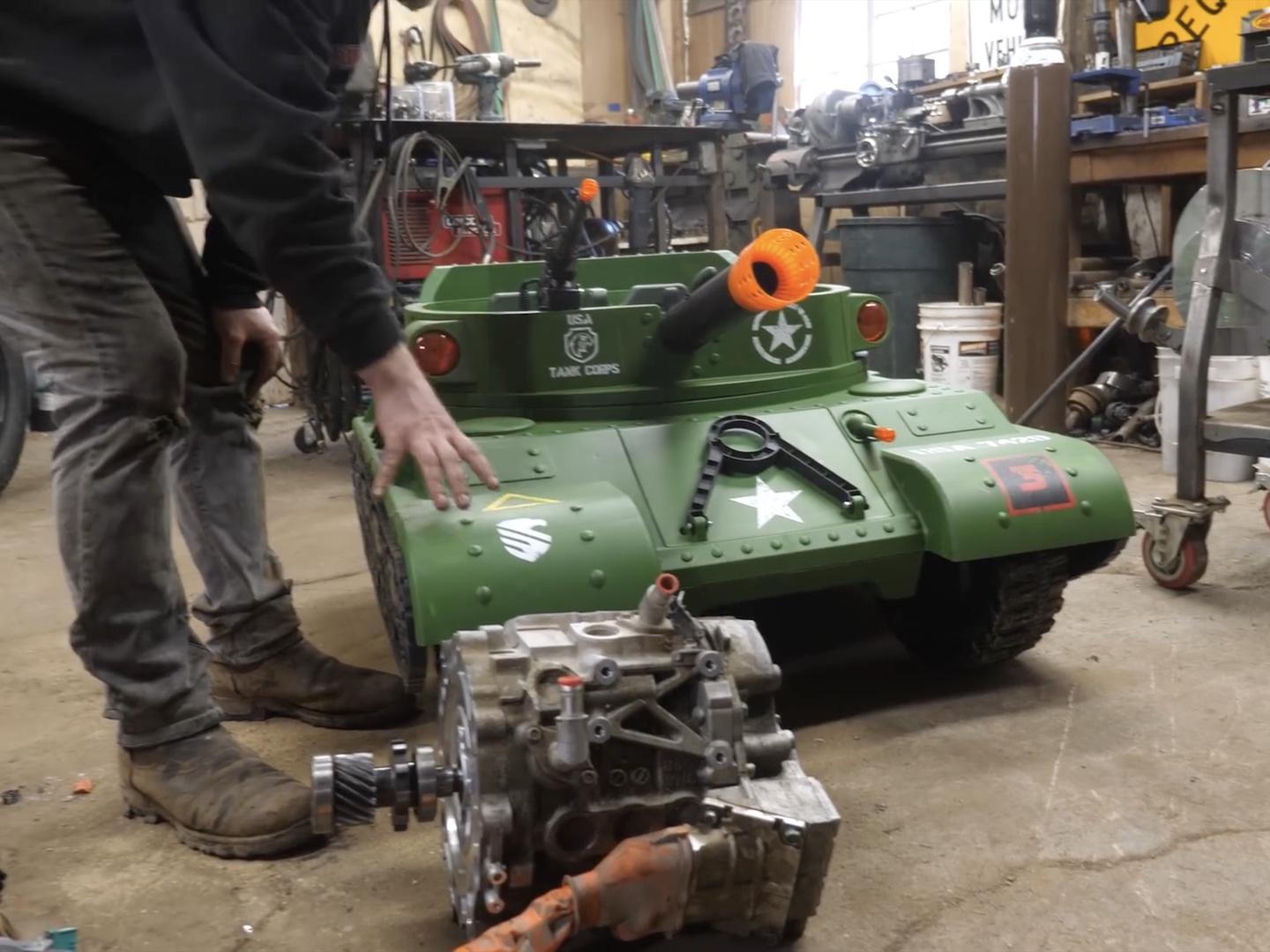 Putting all that power down, of course, may be tough given Grind Hard’s plans to substitute the tank’s plastic wheels for snowmobile treads.