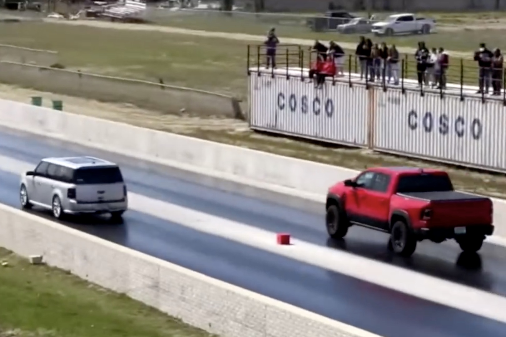 Deckard rocketed ahead of the more powerful TRX, pulling an early lead the Ram couldn’t claw back in time. The Flex flew to a 12.51-second pass at 113 mph, and that was with what Deckard tells us was a bad launch—1.93 seconds to the 60-foot mark.