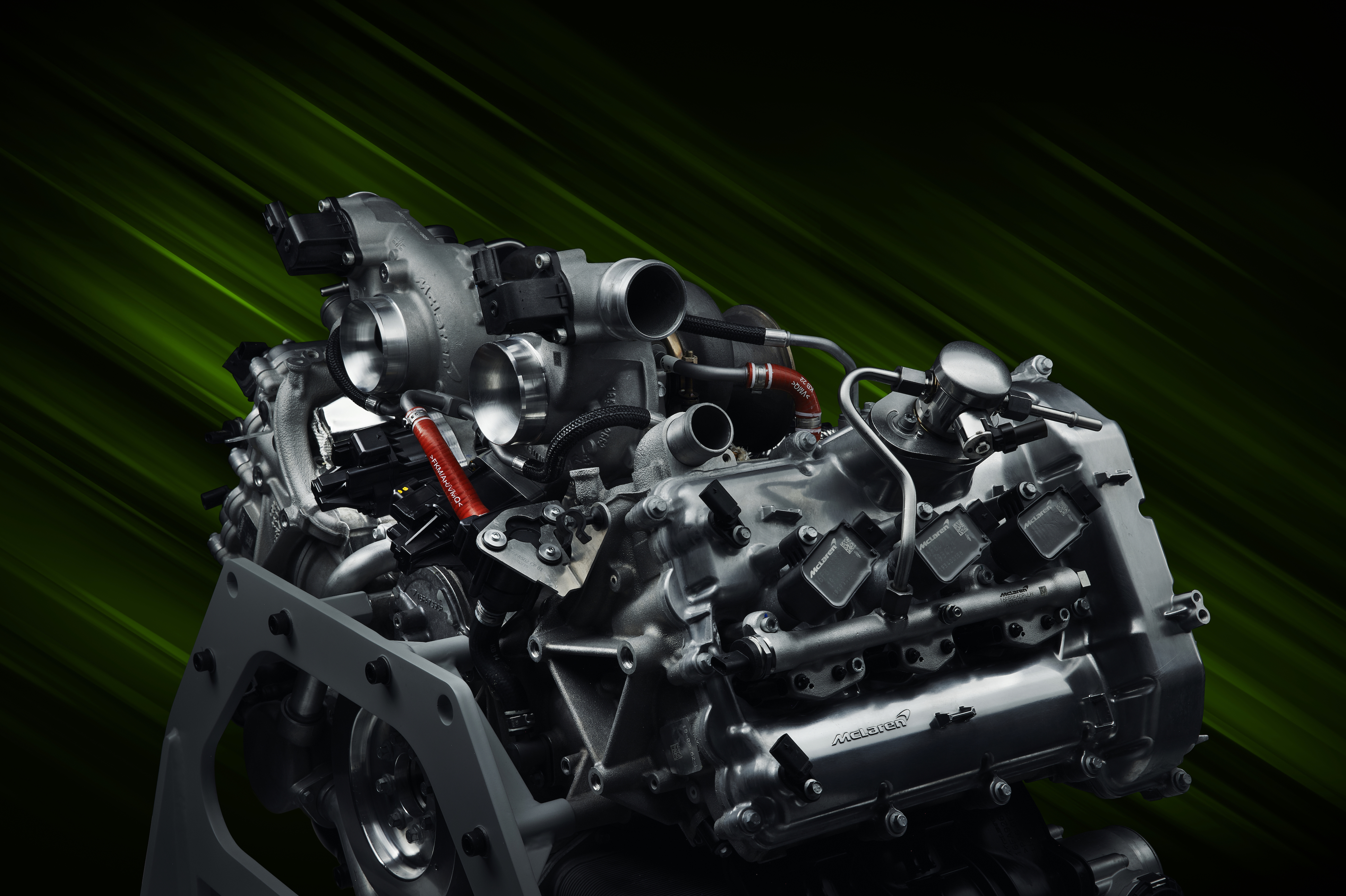Codenamed the M630, McLaren says it was “engineered from the ground up” to fit into the MCLA platform. Special attention was paid to packaging, which explains why it uses a 120-degree “hot vee” layout—meaning that the turbochargers are located within the valley of the engine—so McLaren was able to lower engine height by 1.6 inches as compared to the M840T twin-turbo V8 found in the 720S. Engineers were also able to cut down M630’s length by 1.1 inches because the bore is 0.35 smaller than the M840T’s.