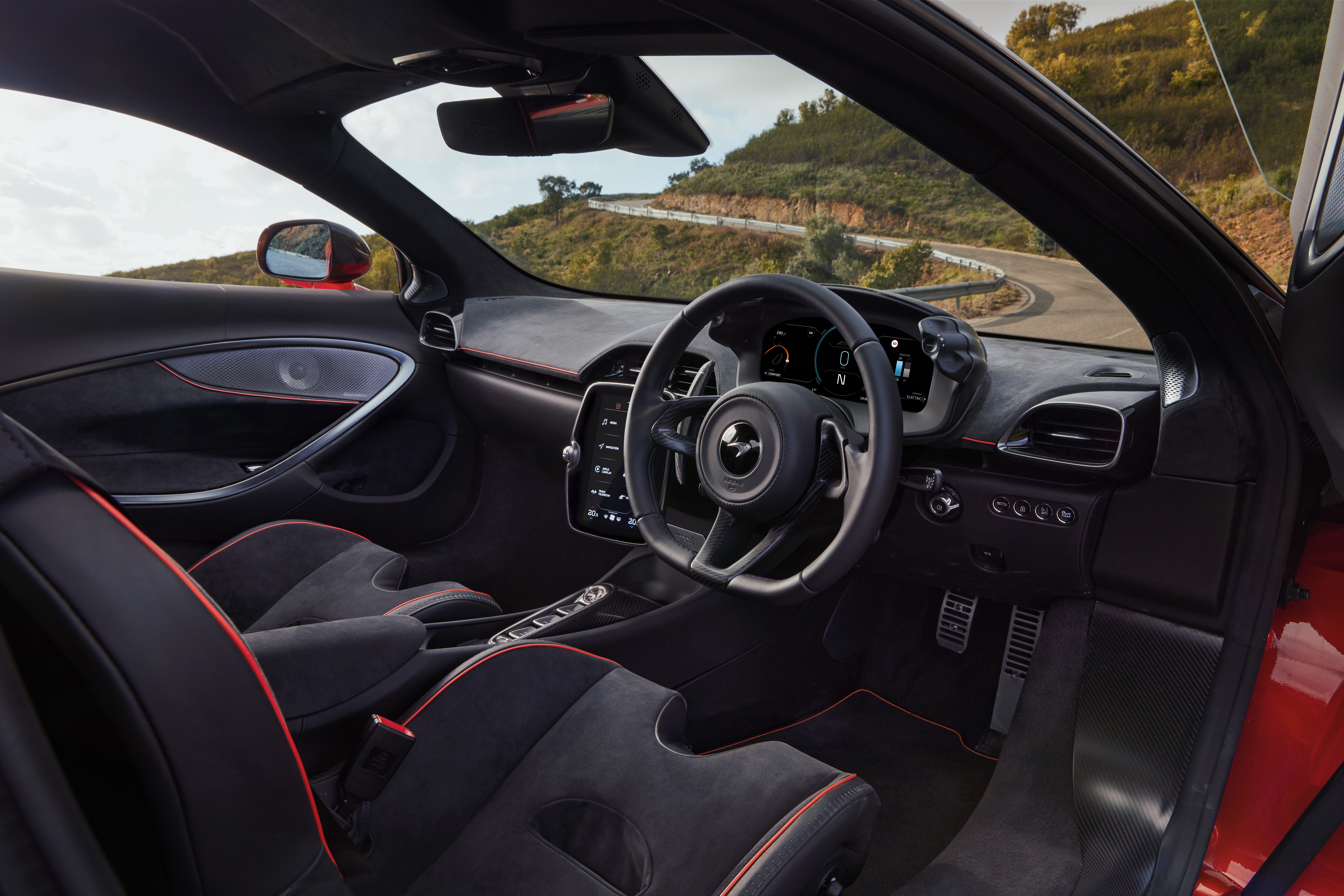 That’s still quite light, hybrid powertrain and all. The car’s hybrid bits account for just 287 pounds of its curb weight, according to McLaren. That includes the 34-pound e-motor and 194-pound battery pack. The new e-motor is less than half the weight of the one found in the P1 but has 33 percent more power density, according to Sunoj George, McLaren’s head of electric drive technology.