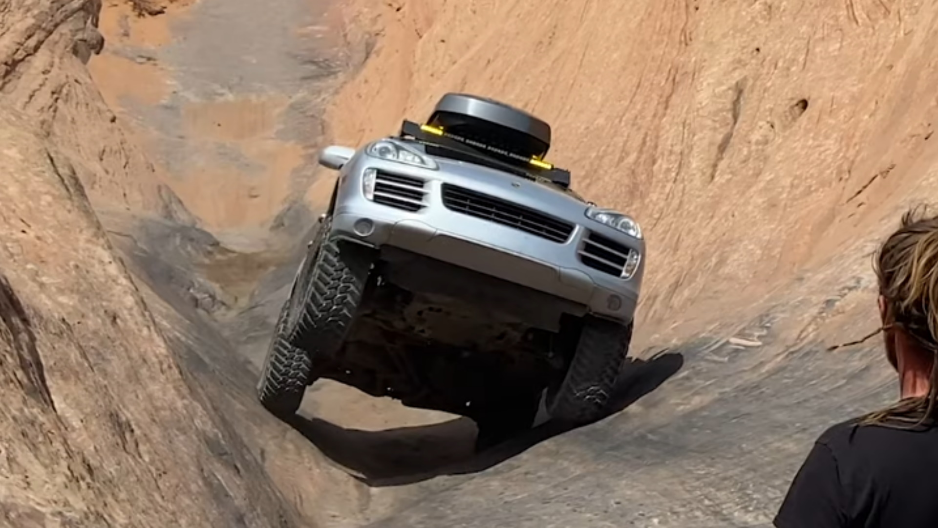 Now, a Porsche Cayenne on big all-terrain tires has been filmed making an attempt at the climb. Admittedly, crawling up Hell’s Gate has a lot to do with wheel placement as opposed to out-and-out off-road performance, but seeing this Porsche in action is impressive nonetheless. It’s not every day a suburbia-bound luxury SUV makes moves like this.
