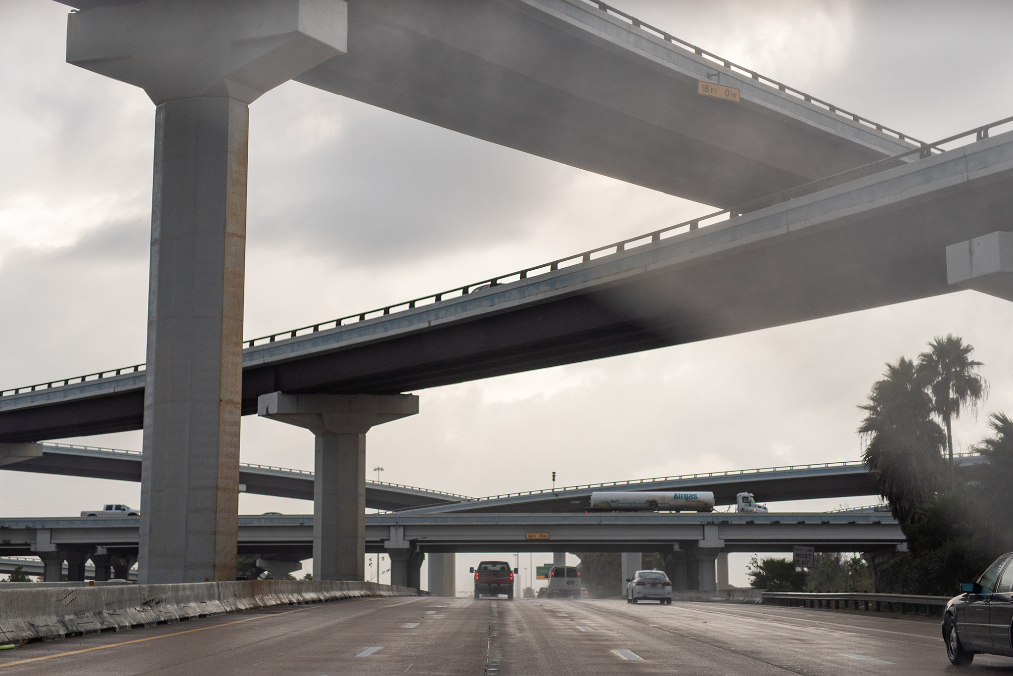 The tension stayed with me as I dodged Nissan Altimas ripping across four lanes of traffic with no signal on and endless on-ramps lined with faded strip malls feeding more and more cars into the system. Houston is an interesting paradox. It is by far the most car-focused city I have ever been in, and it is also the least fun place to drive in America. There is no public transit to speak of, making car ownership almost compulsory. The city is encircled by three concentric loops of highways; the most distant is 180 miles long and has been in various states of planning and construction since before man landed on the Moon. Interstate 10 just west of downtown is the world’s widest stretch of freeway, at twenty-six lanes. TX2K is held here in no small part because the entire city becomes a drag strip at night.