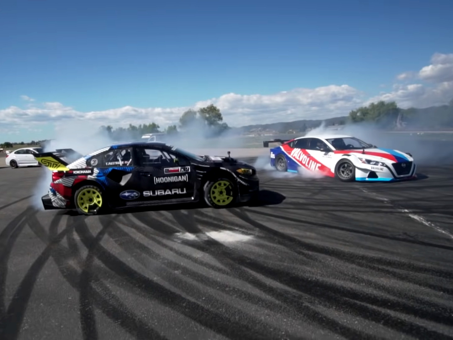It’s a video series Hoonigan are calling Flying Finish. Pastrana takes on other cars on the dragstrip in a similar manner to Ken Block’s Hoonicorn vs. The World series. In this first video, the competition is a 1300 horsepower Nissan Altima known as the Altimaniac. Sporting a rear-wheel drive conversion, it packs a 4.1 liter stroked VQ38 V6 under the hood with twin turbochargers helping it gulp down gallons of air every second. It’s very much a drift build, sitting impressively low to the ground with its 3D-printed widebody looking suitably mean on track.