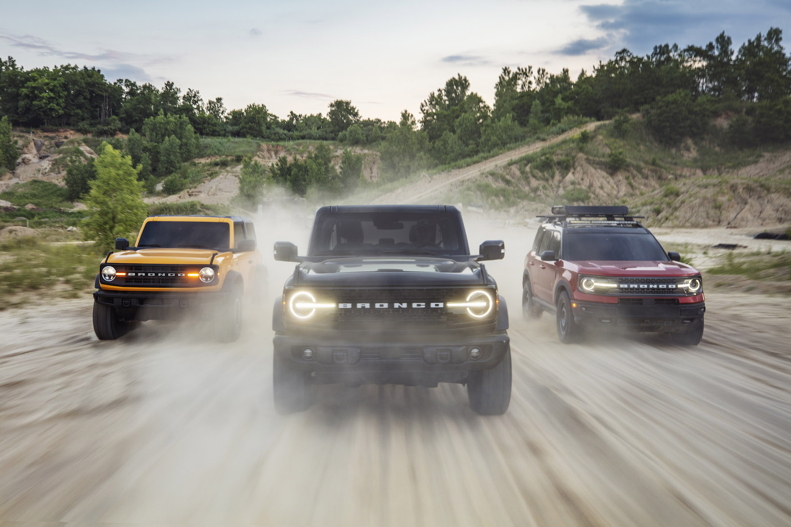 As for an electric model, Ford has loosely hinted that it could happen, having showed a Bronco-like silhouette in an EV presentation last month. It bears saying, though, that the depicted vehicle appears more the size of a Bronco Sport than the larger, truck-based real deal. All that’s certain is that with the smaller, hybridized Maverick below it and the F-150 Lightning above it, the Bronco pickup would be the black sheep of the electrified Ford truck family if it launched without a big old battery.