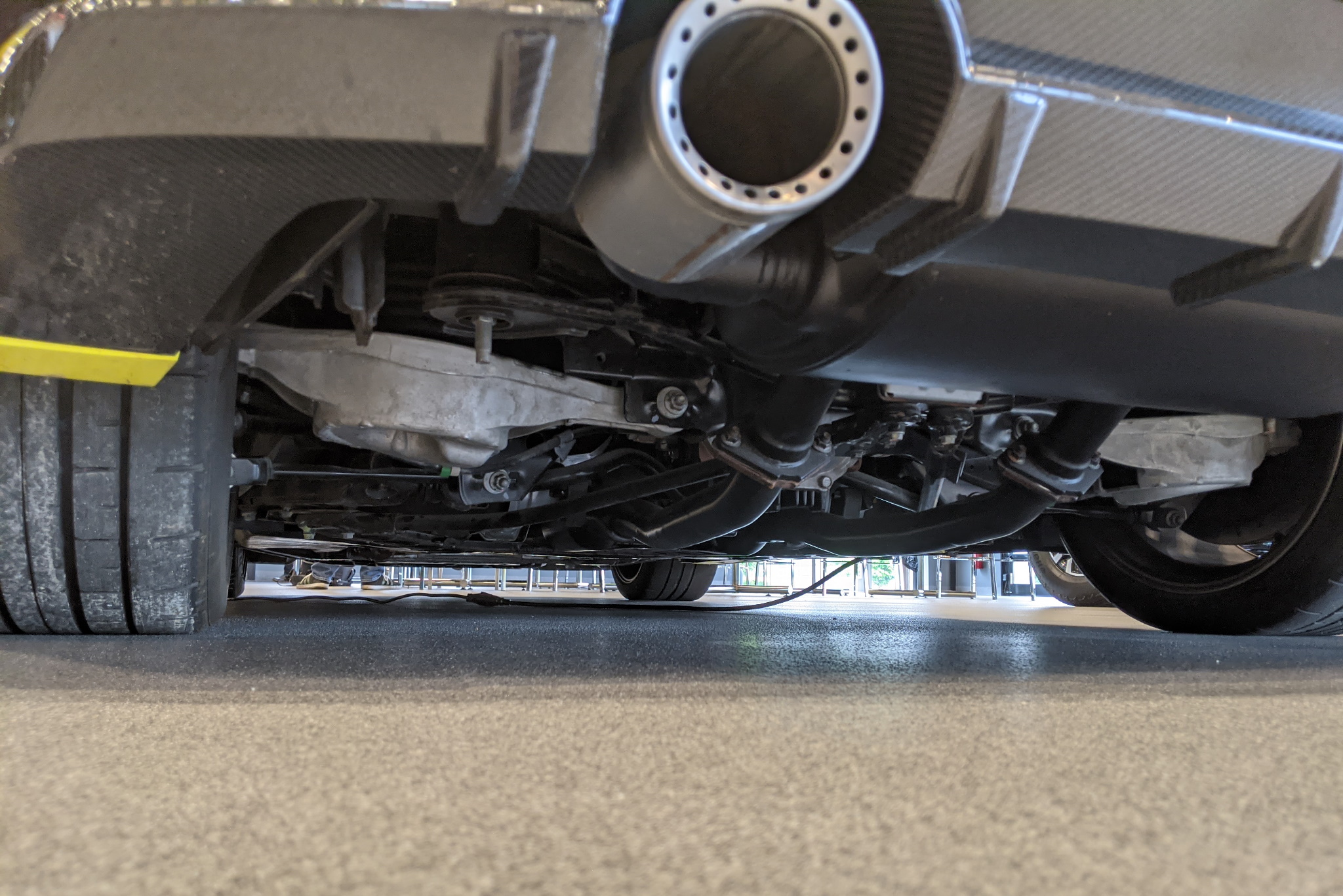 You can tell it’s a prototype as soon as you look under it, which I did. The entire underside is quite clearly a 370Z—comparing photos of the two cars’ undercarriages will reveal that pretty quickly—and the exhaust system is routed around existing parts with room to spare, just to get everything working together.