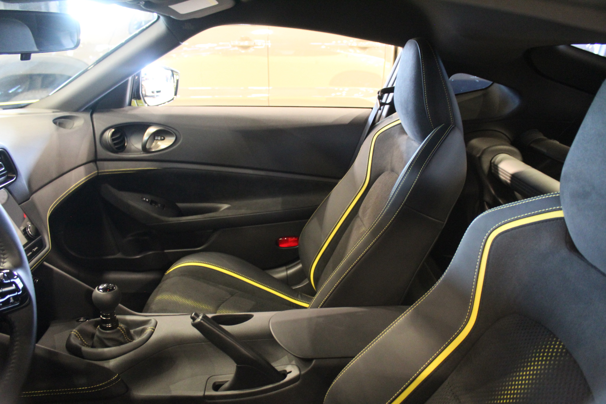 The design—which takes serious inspiration from the old 300ZX—rejects the squared-off form that’s popular on other sports cars like the BMW M4 in favor of softer bodywork that tightens around the rear tires as it gets lower, making the whole body fit nicely over its wheels. Likewise, the cutout for the exhausts extends up higher than on many other vehicles. It fills the negative space that may otherwise make the rear look bulbous and contrasts the bright yellow paint very nicely as well.