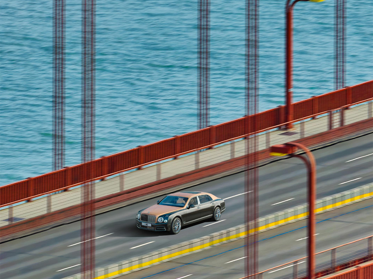 To create the photo, photographer Simon Stock chose a vantage point about 2,300 feet away from the Rose Gold-and-Magnetic-colored Mulsanne driving across the bridge. It took Stock’s team of five—one photographer and four computer technicians—six months of planning just to prepare for the shoot. Then came eight days of shooting to capture 700 high-resolution images, followed by three months of post-production to stitch the pictures together. It’s the same process NASA has refined over decades to create panoramic photos of the Martian surface from the images sent back by its rovers.
