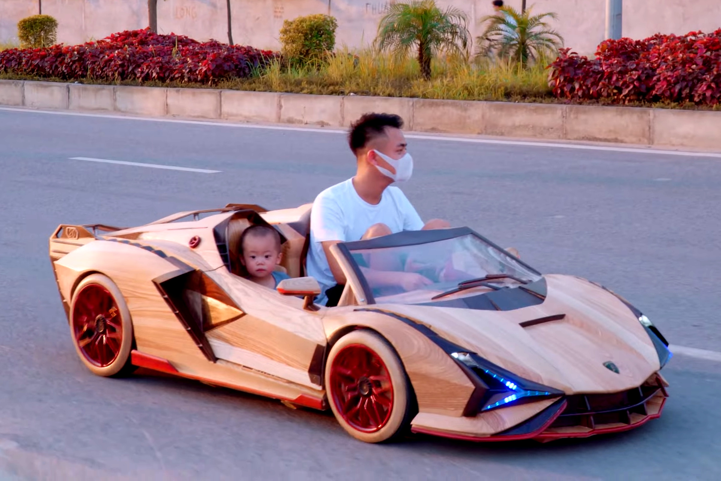 To be a young automotive enthusiast is tough sometimes. Real cars are out of reach, and thus the precocious child is left to lust after Power Wheels and other toys built to suit their size. Some are lucky enough to have parents that go the extra mile, though, like this Vietnamese boy whose father built him an entire Lamborghini Sian out of wood.