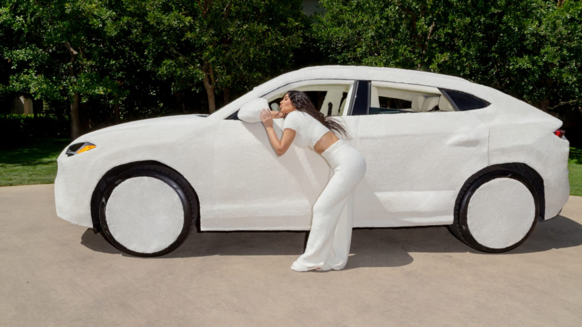 The vehicle under the fluff is a Lamborghini Urus, the Italian automaker’s first SUV. The entire car, inside and out, has been enveloped in white fuzzy fabric akin to that used by Kardashian’s own SKIMS clothing brand. It appears to be a prop for a marketing campaign, with the famous influencer taking part in a photoshoot with the car wearing SKIMS pieces made of matching material. The interior in particular does look rather cozy, though we suspect covering the airbag like that is not a smart move.