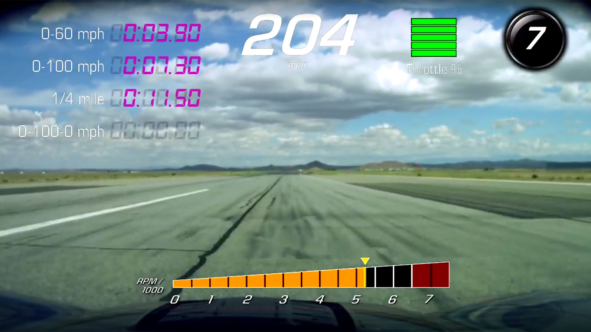 The video, captured during a run at the Mojave Magnum with the Performance Data Recorder in the Corvette, chronicles a top speed run by a Corvette Z06 outfitted with Callaway’s 757 package, which bumps the supercharged V8’s output from 650-hp and 650-lb.-ft. to 757-hp and 777-lb.-ft. That power boost may seem superfluous, given the Z06 already pushes the limits of usable real-world performance—but it’s enough to power the car up to at least 202 miles per hour, given a mile and a half of open runway. And that’s with a launch conservative enough to impress Paul Ryan.