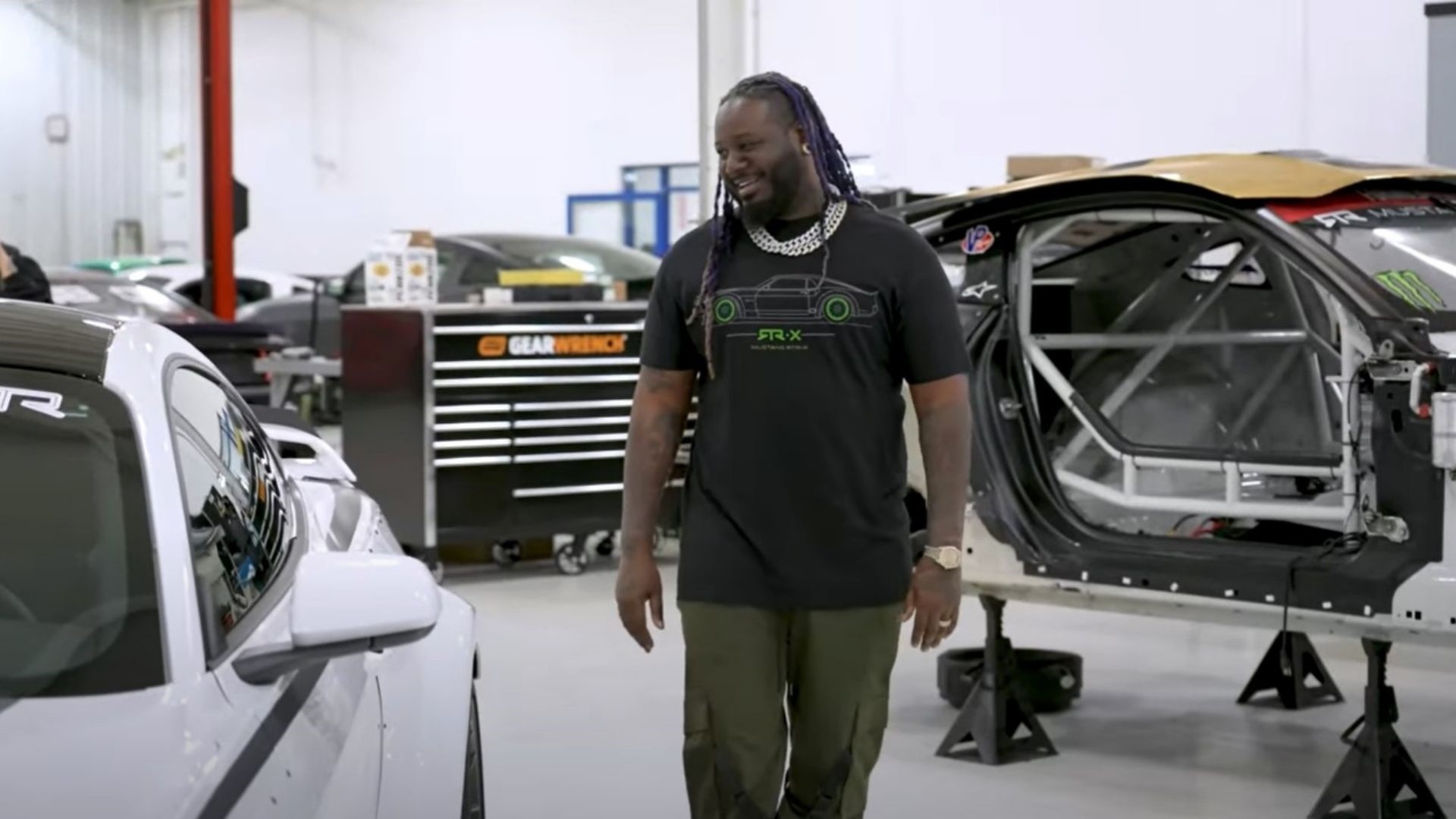 Then Gittin, a world champion drifter and winner of the 2020 Formula Drift Championship, took T-Pain and his crew out for joyrides, giving instruction and tips while drifting. He definitely knows what he’s talking about: the same year T-Pain tweeted his desire to go out drifting, Gittin became the first person to drift the entire 12.9-mile Nordschleife circuit at the Nurburgring in his own 900-horsepower Ford Mustang RTR drift car.