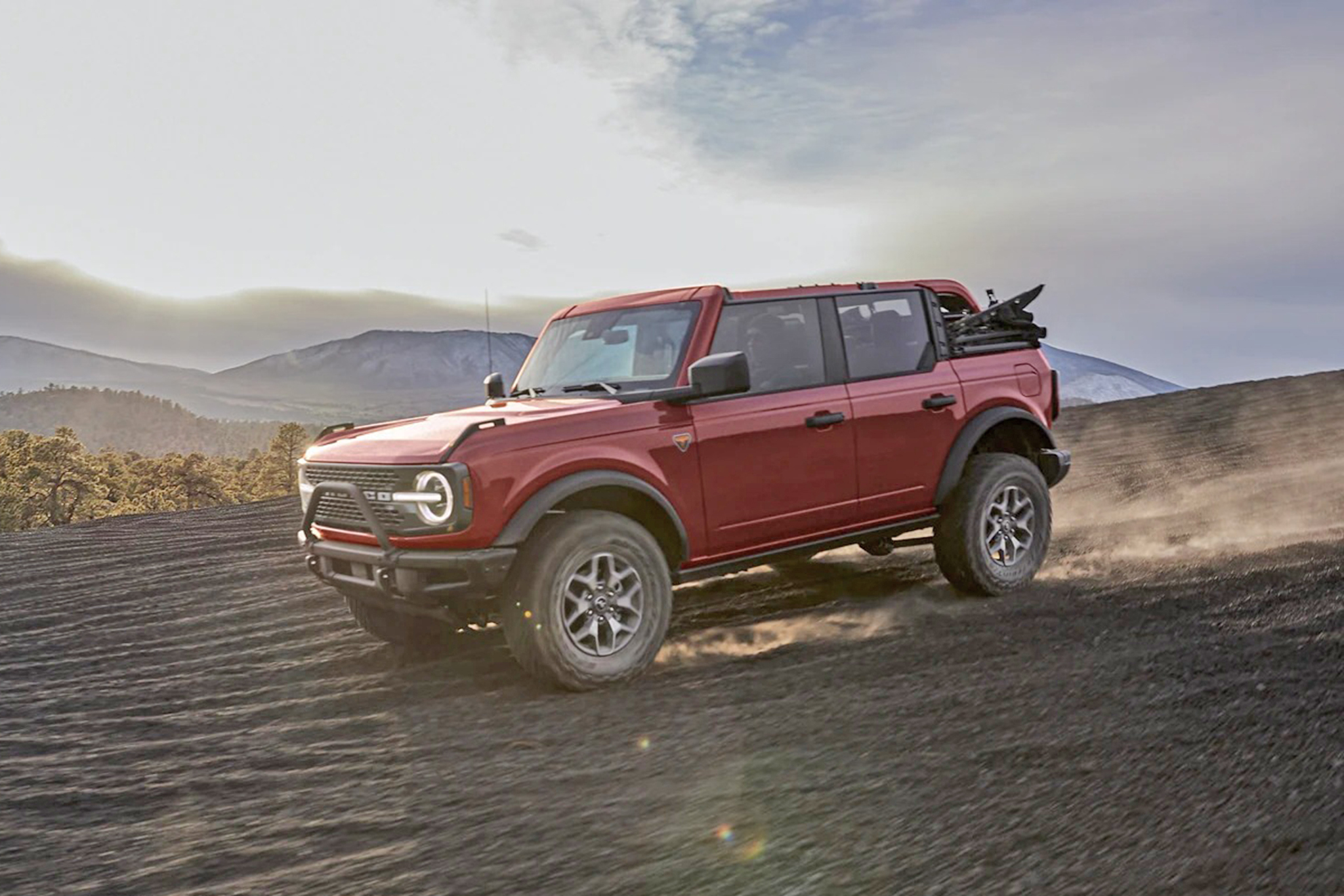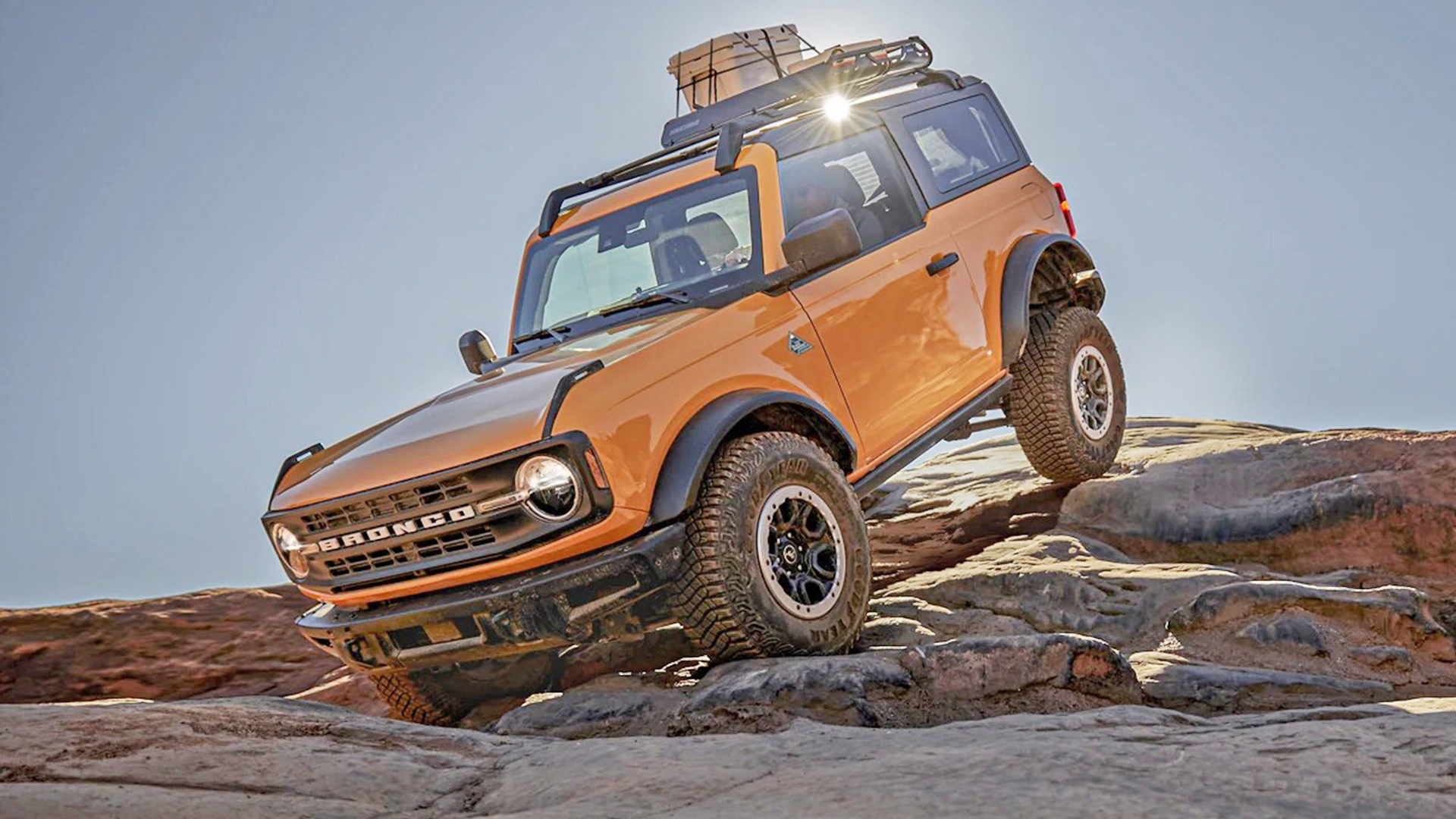As a reminder, the Broncos come with either a 2.3-liter, 270-horsepower EcoBoost four-cylinder engine or a 2.7-liter, 310-hp twin-turbo V6. Transmission options include a seven-speed (6+1) manual with a crawler-gear ratio of 94.75:1 or a 10-speed automatic with a maximum crawl ratio of 67.8:1 with the 4×4 transfer case, which is optional. There are also two 4×4 systems to choose from, with front and rear lockers offered. Built on a highly modified version of the Ranger pickup’s platform, the Bronco also sports goodies like a solid rear axle (a Dana 44, specifically), available front sway bar disconnect for increased articulation, a complex terrain management system, and of course, removable doors and roof panels. If you need any more evidence that Ford is gunning for the Wrangler, the Sasquatch package gives the Bronco 35-inch tires from the factory.