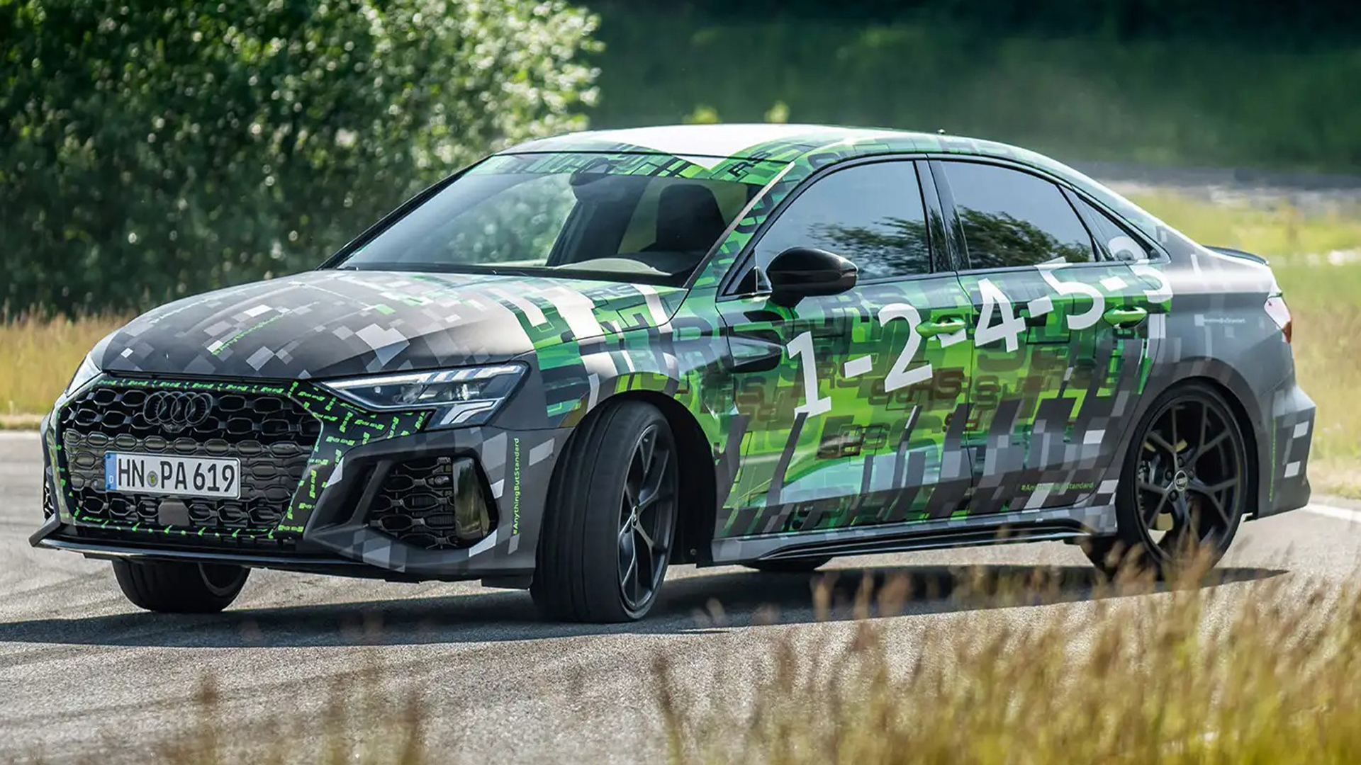 Audi is teasing its all-new RS 3 supercompact by showing off a pair of camouflaged prototypes. Judging from the photography and the “1-2-4-5-3” emblazoned wrap, it doesn’t look like the next RS 3 will introduce anything too radical when it comes to styling and engine choice. It’ll look like a more aggressive version of the recently revealed A3 (which doesn’t look all that different from the previous-gen A3) and continue to use the company’s awesome turbo five-cylinder engine.