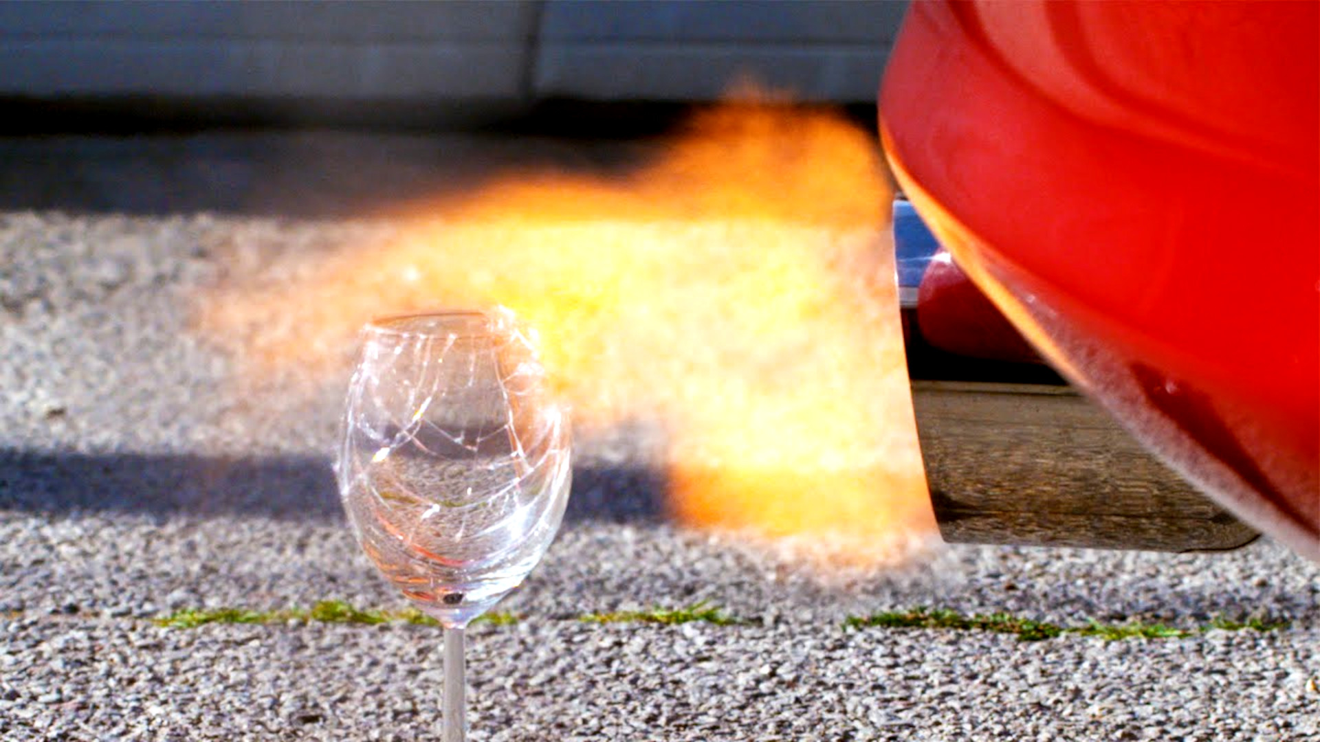 In the Supra’s case, some resonance is visible in the wine glass as it sits in the exhaust stream from the vehicle. However, when the glass shatters, it’s due to the high-pressure wave that blasts out of the exhaust created by the detonating fuel. It’s highly likely that running a two-step set up that cuts fuel instead of ignition wouldn’t work for this purpose, as there would be no sudden explosion to smash the glass to pieces.
