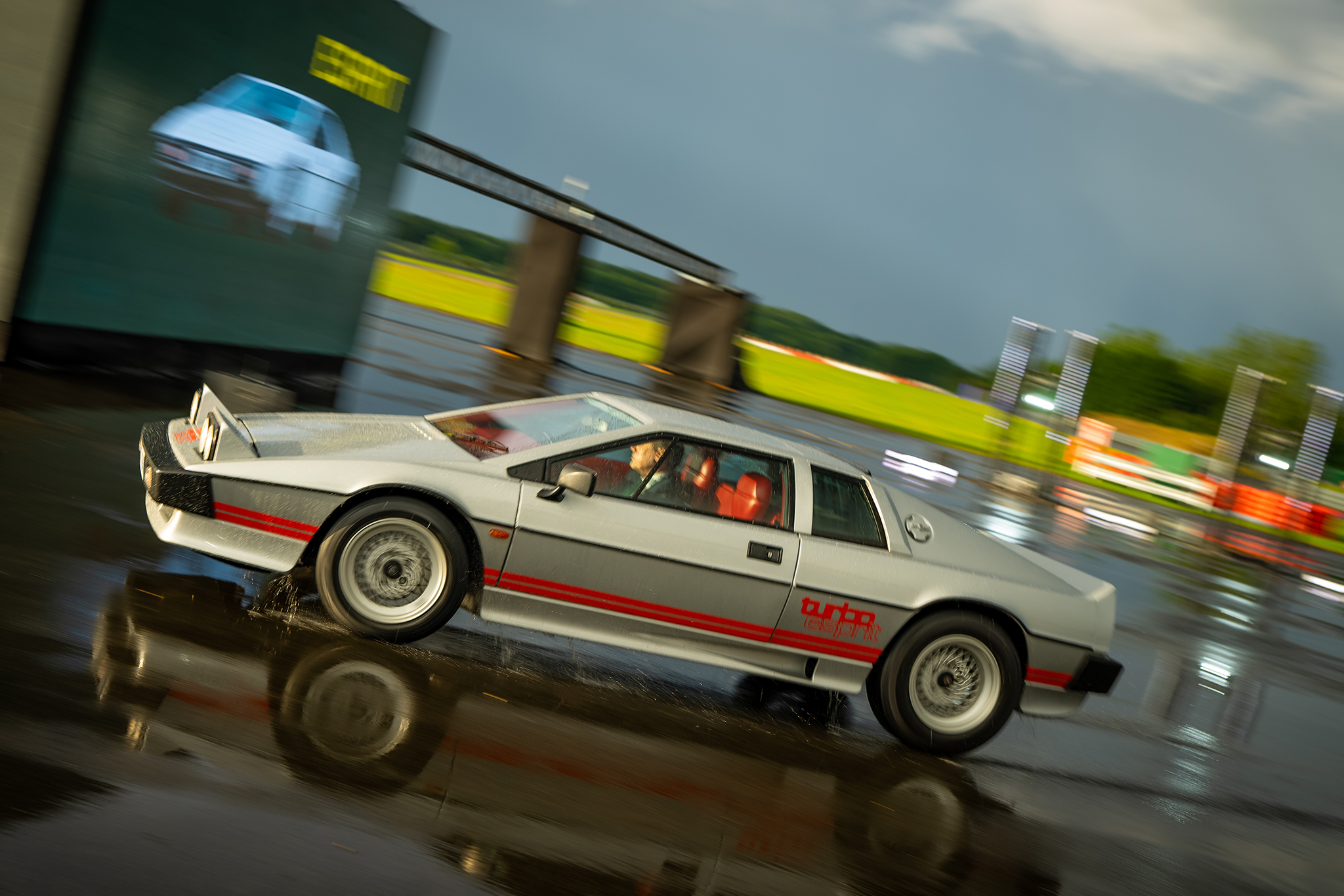 Before showing off the new car—and fresh off a torrential downpour that made event emcee Andy Jaye the dampest person on the planet—Lotus put on something of a moving history lesson for those in attendance at its headquarters on Tuesday. Just as the rain stopped, an early Elan came flying down the track, then a Type 72 Formula One car (driven by Director of Attributes and Product Integrity Gavan Kershaw, who also looked… damp), an Esprit, a couple of Elises, an Evija, an Exige, and an Evora. It was a glorious if slightly bittersweet glimpse at what lead Lotus to this point.