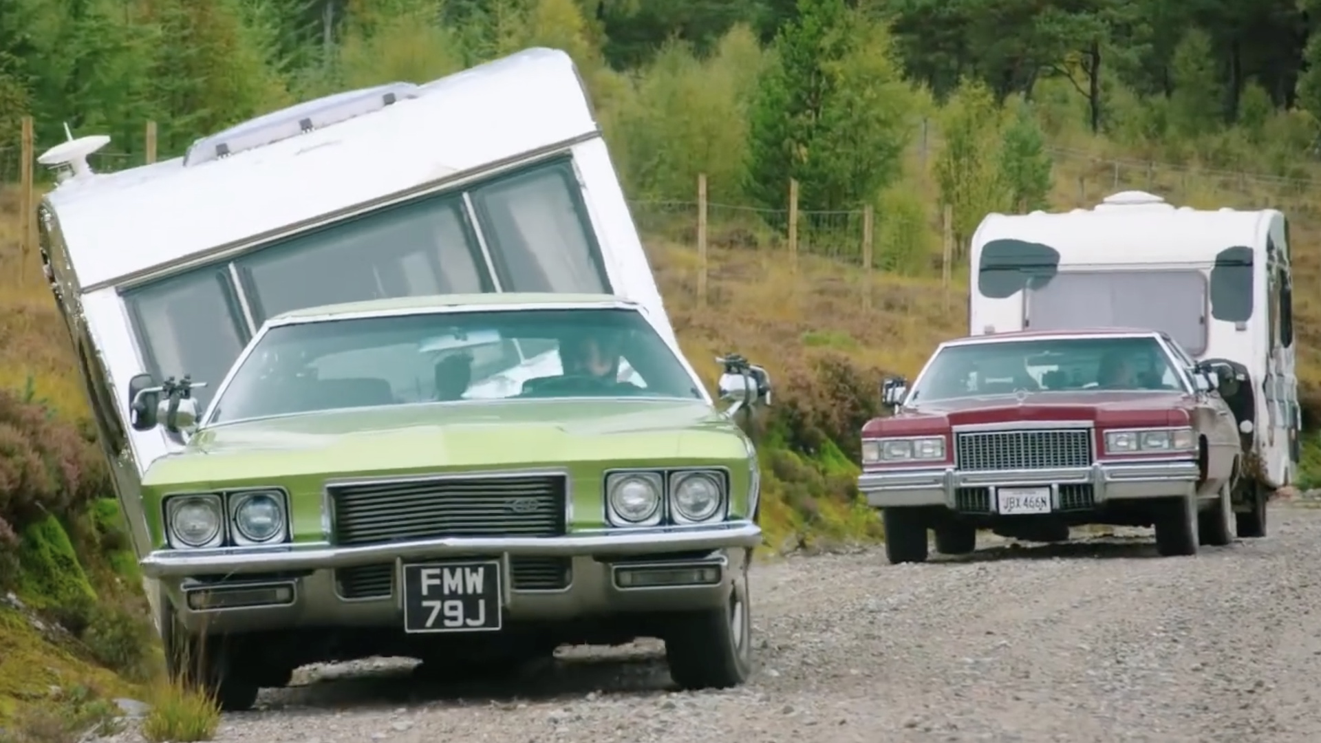 As revealed in a trailer released Thursday, the Brits embark on a tour of the northernmost land of Great Britain in Malaise Era American cars, ill-suited to the British Isles’ tight roads or gas prices. Clarkson commands a ’70s Lincoln Continental Mark V, Hammond a 1971-1973 Buick Riviera, and May, a 1975 or 1976 Cadillac Coupe de Ville.