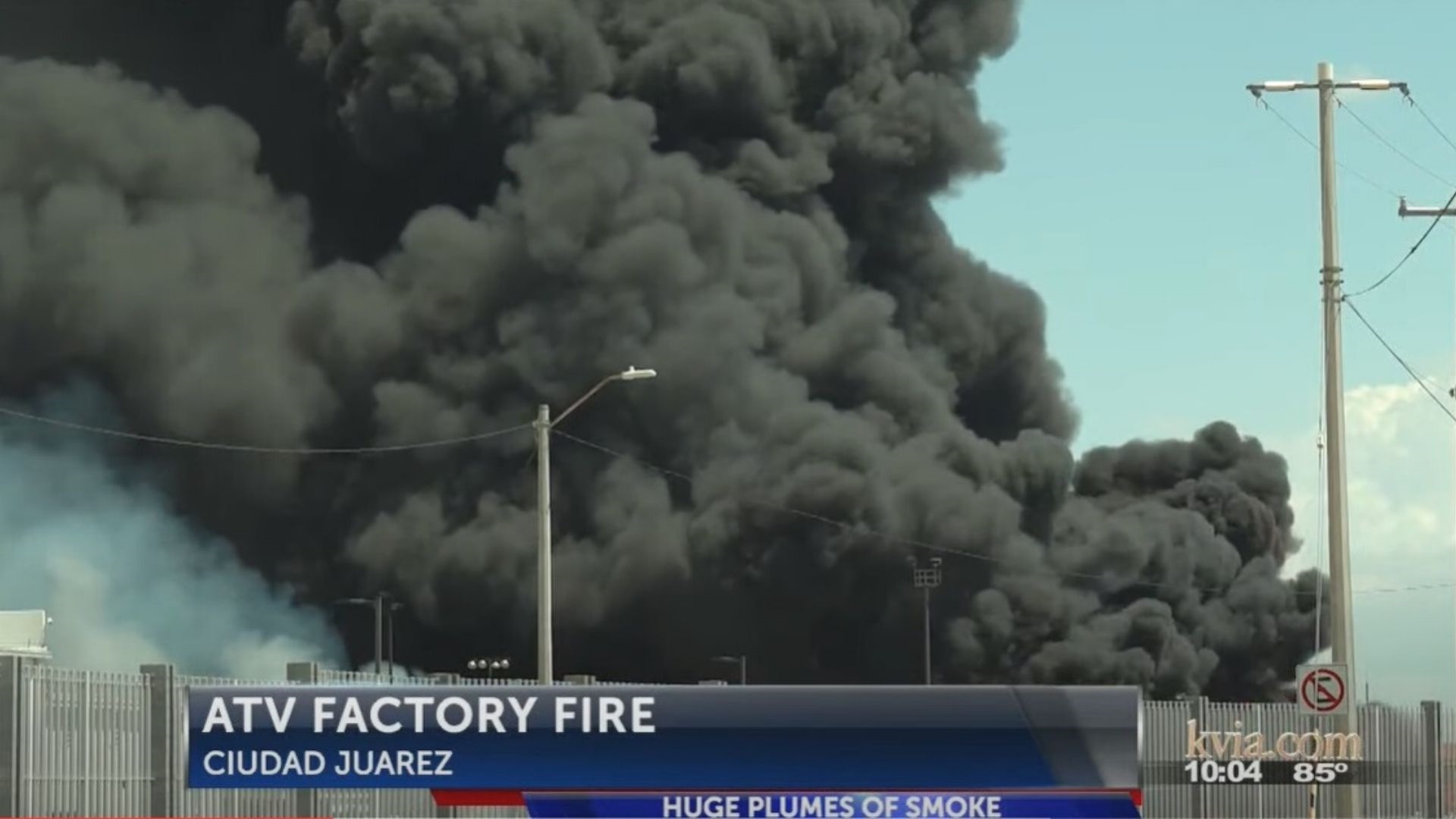 A huge blaze was reported yesterday at an ATV warehouse in Ciudad Juárez, Mexico. The fire sent plumes of smoke into the sky that could be seen across the border into Texas, triggering a flurry of emergency phone calls from concerned residents in the area. According to KVIA-TV in El Paso, around 1 p.m. CT an explosion of unknown origin created the giant fire, which burned a whole lot of ATVs to an unrecognizable crisp.