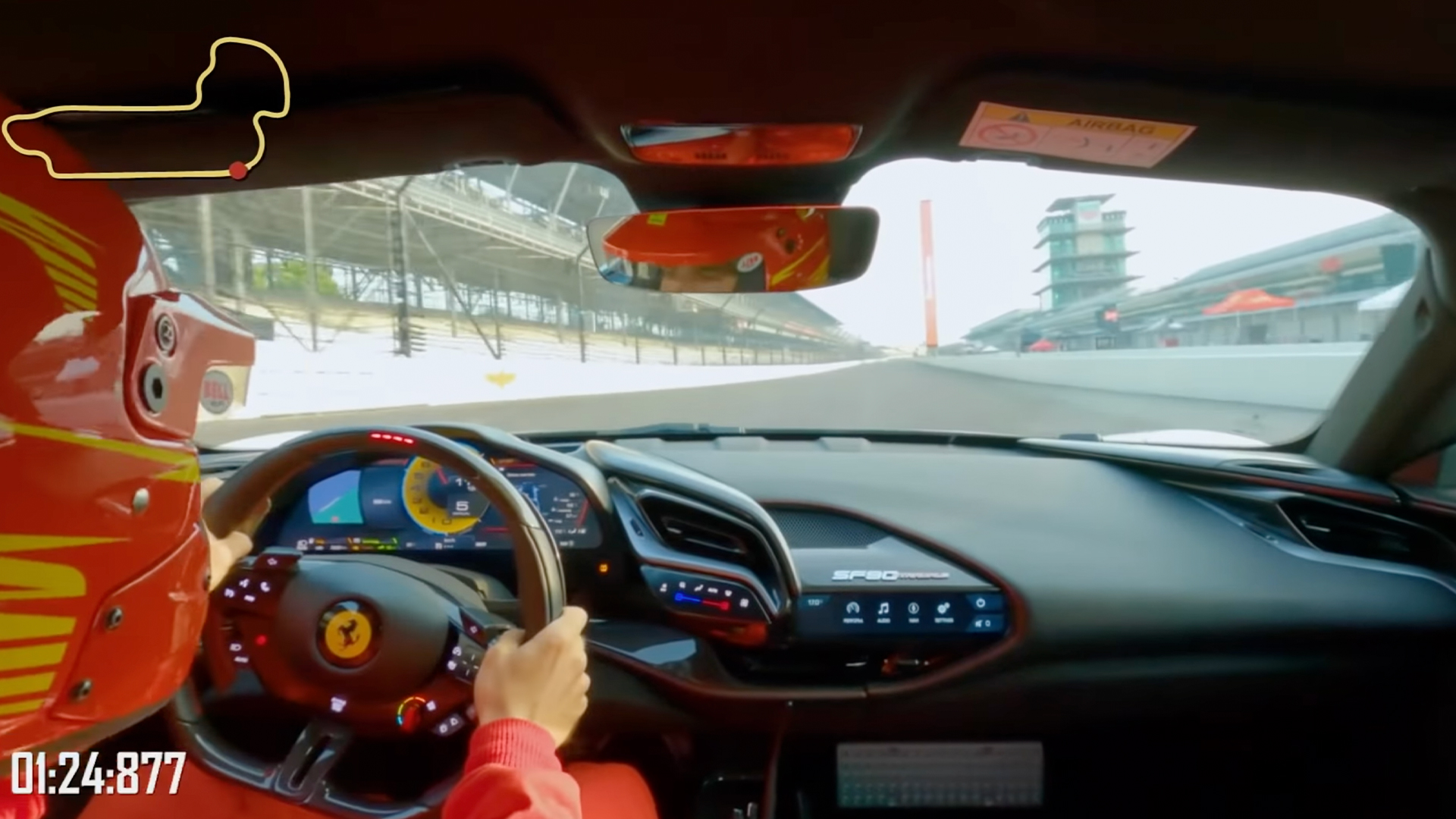 The question isn’t really whether you want an SF90 Stradale, of course. If someone offered you one, you clearly wouldn’t turn it down. But do you want to spend well over half a million bucks on one? Even the people who have that much money are gonna need some sort of kudos beyond auto journalists thinking it’s great. That’s where things like track records come in, and the Ferrari SF90 Stradale knows all about that at Indianapolis Motor Speedway’s road course.