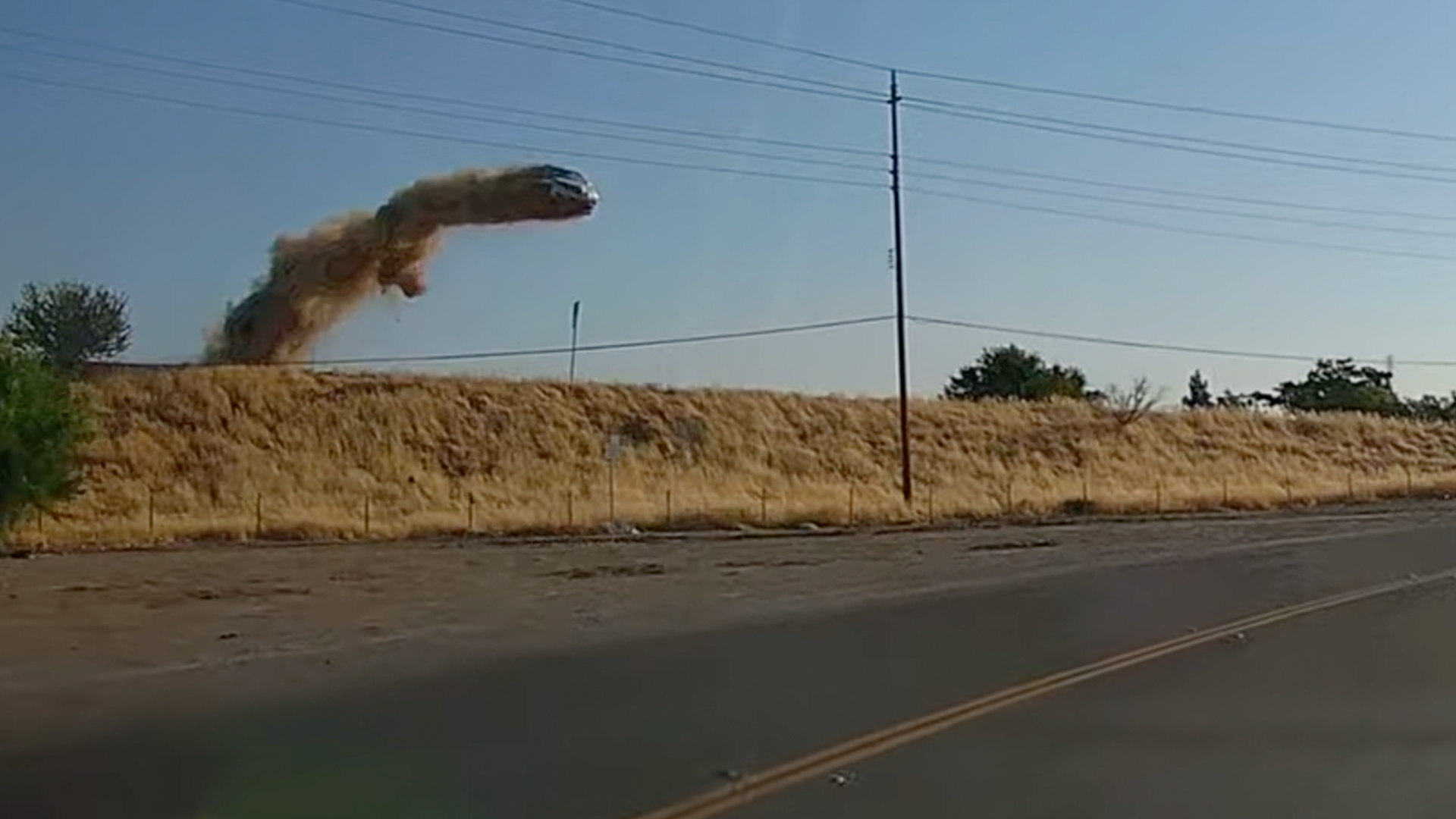 Around 7:19 a.m. local time on July 14, a speeding Toyota Camry in Yuba City, California was caught on camera as it flew through the air and landed hard on the pavement below. The incident was reported on by CBS Sacramento and a video was posted to YouTube where it quickly became a viral hit.