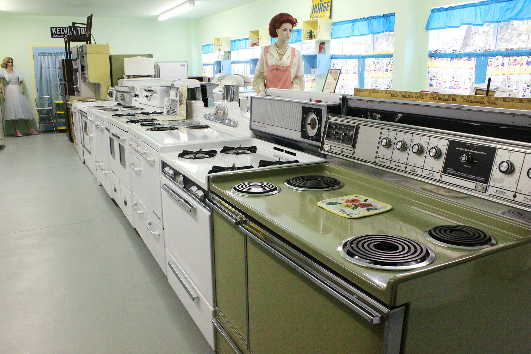 He even built a 1950s era Kelvinator Kitchen, complete with original metal cabinets and cheerful pink appliances. It’s connected to a reproduction 1950s diner, where tour groups can stop to relax.