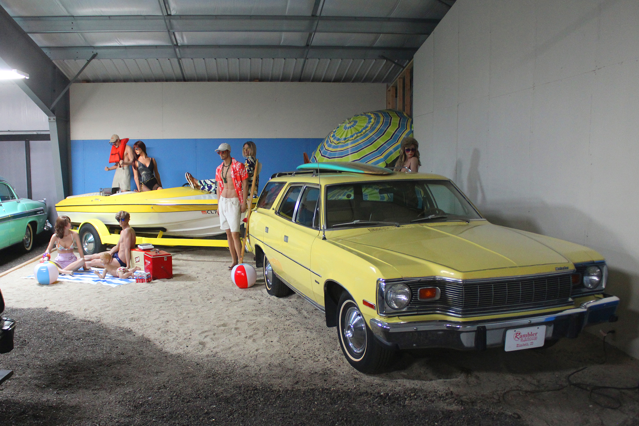 Green uses the figures to play with different time periods of fashion, such as a Jackie Kennedy lookalike or a 1970s beach party. The displays add a playful touch to the cars and increase the entertainment factor for guests. Gale takes particular pride when non-car enthusiasts who are dragged to the Rambler Ranch by family members tell him how much they actually enjoyed visiting.