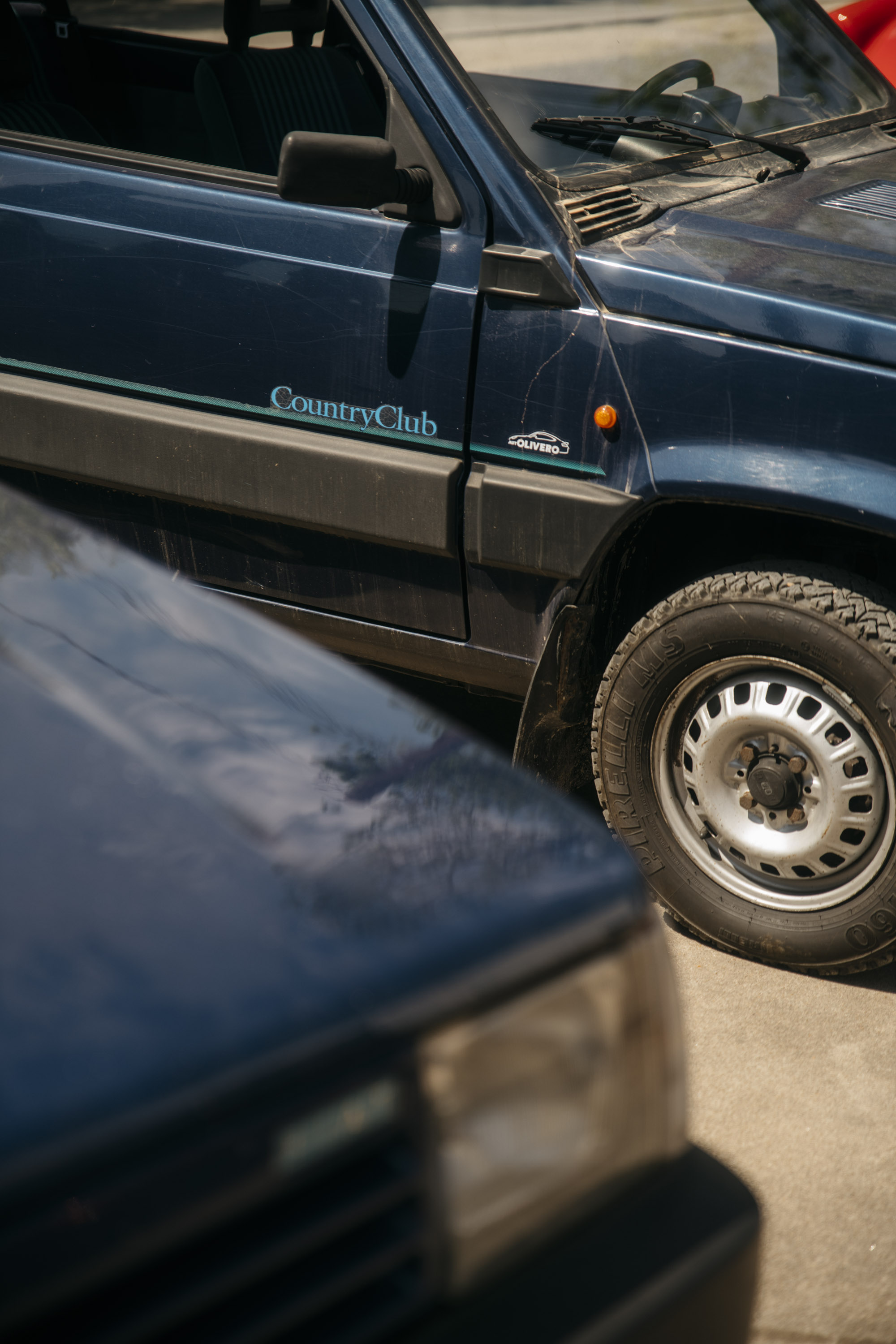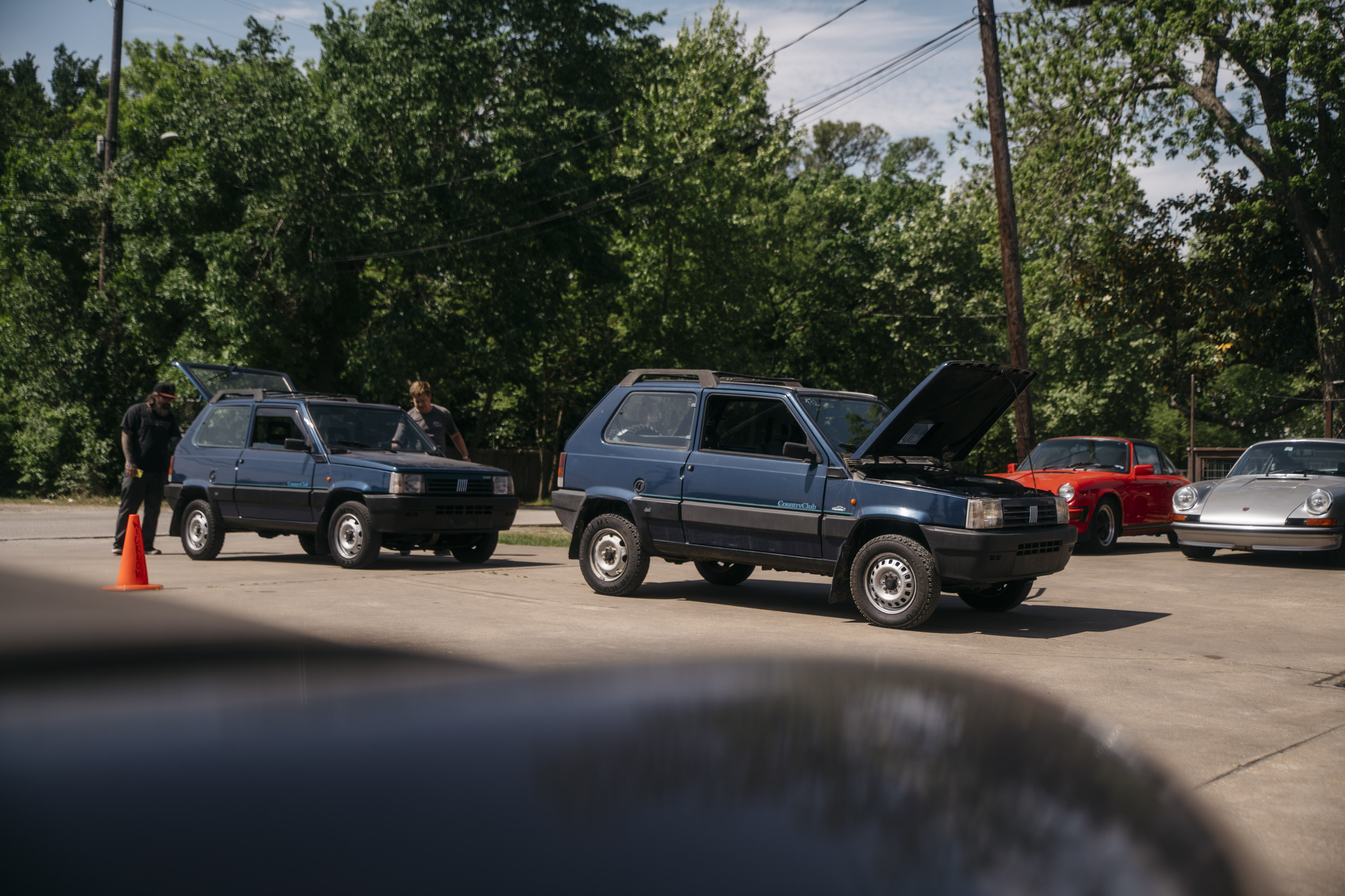 Theory brushed up with reality in January, when, without fanfare, Tom notified Chris and me that he’d bought two Pandas in Italy and they were being prepared for shipping. They were basically identical 1993 Fiat Panda 4x4s in Country Club trim, both dark blue with teal graphics. One came from a well-known classics dealer known as Luzzago in Brescia. The other hailed from a roadside car lot in Fossano. We couldn’t wait to meet them.